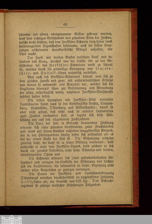 Haltung, Pflege und Gesundheitszustand der Oldenburgischen Schweine.