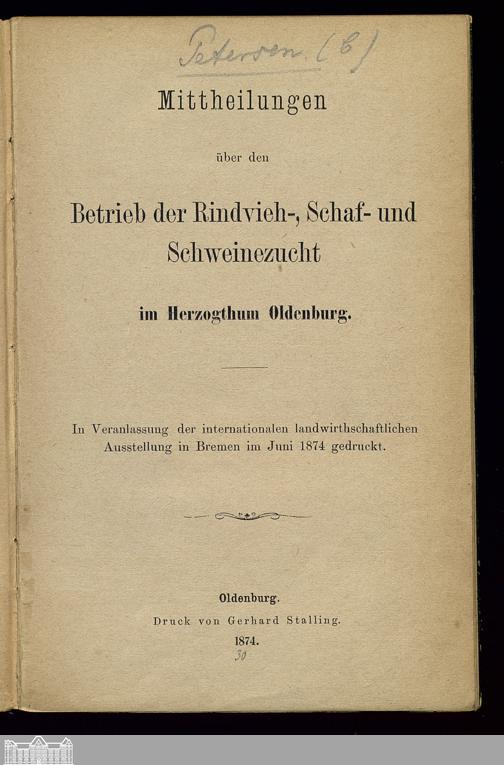 Mittheilungen über den Betrieb der Rindvieh-, Schaf- und Schweinezucht im Herzogthum Oldenburg : in Veranlassung der internationalen landwirthschaftlichen Ausstellung in Bremen im Juni 1874 gedruckt