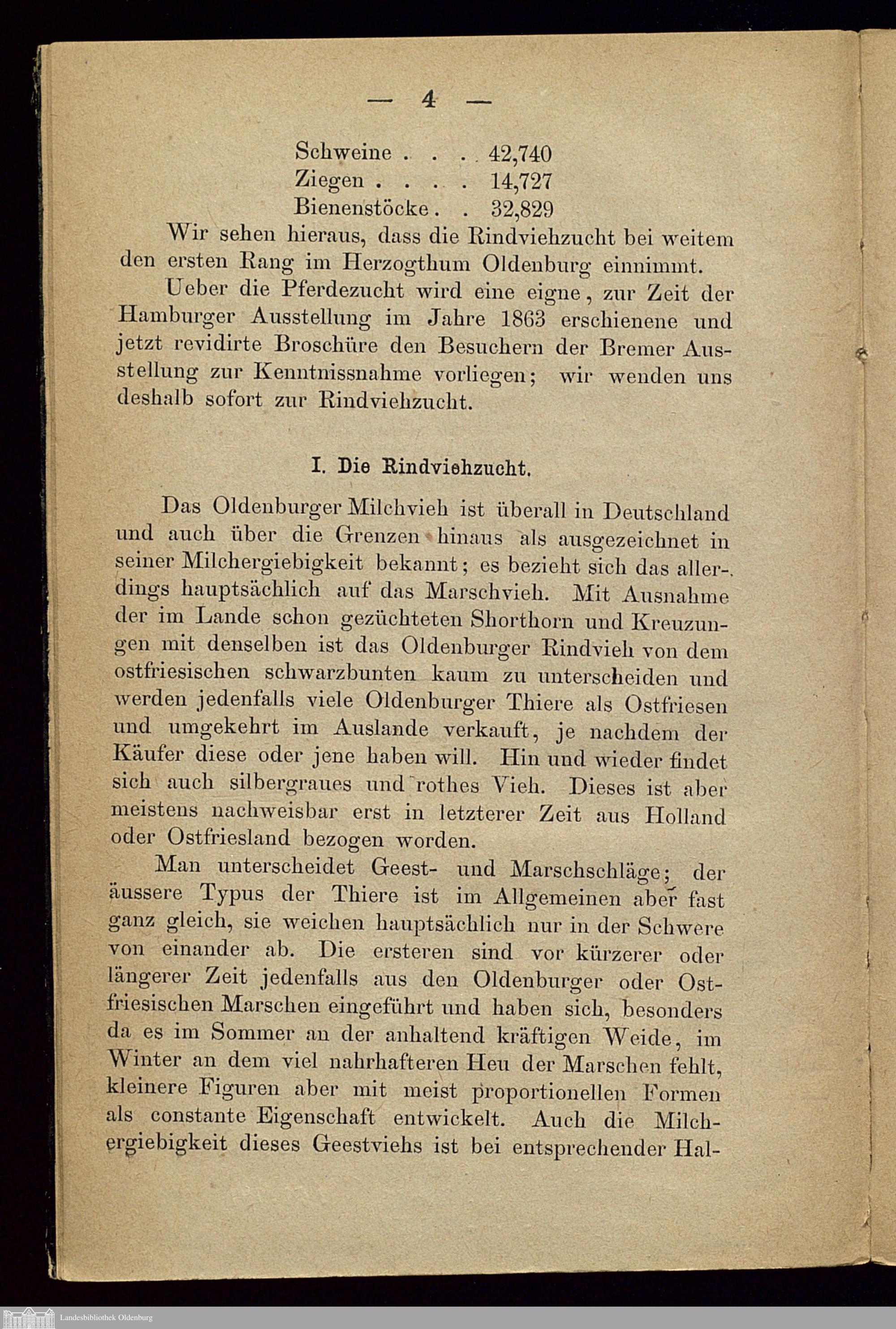 Mittheilungen über den Betrieb der Rindvieh-, Schaf- und Schweinezucht im Herzogthum Oldenburg : in Veranlassung der internationalen landwirthschaftlichen Ausstellung in Bremen im Juni 1874 gedruckt