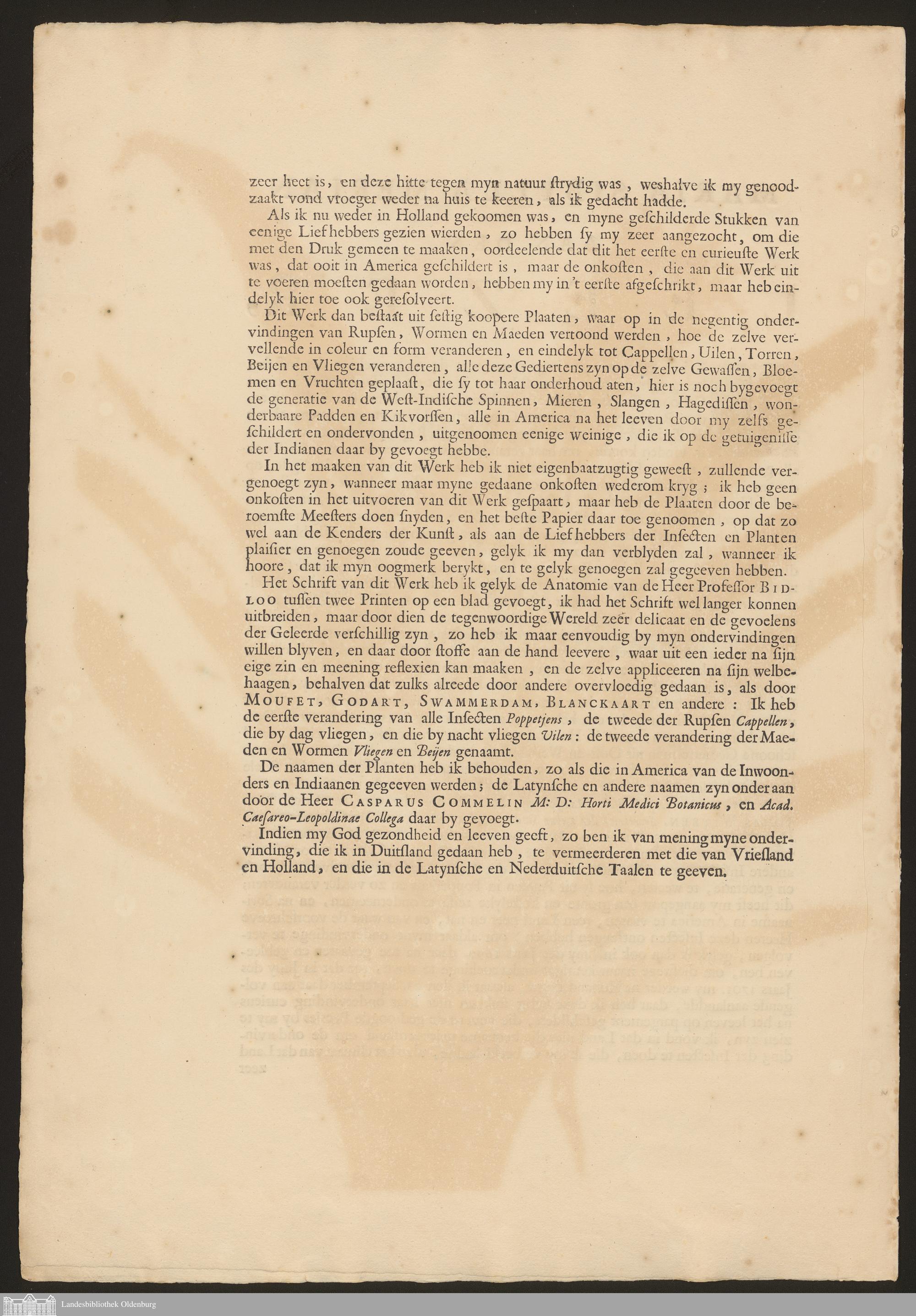 Metamorphosis Insectorum Surinamensium : Of Te Verandering Der Surinaamsche Insecten ; Waar in de Surinaamsche Rupsen en Wormen met alle des zelfs Veranderingen na het leven afgebeeld en beschreeven worden, zynde elk geplaast op die Gewassen, Bloemen en Vruchten, daar sy op gevonden zyn; waar in ook de generatie der Kikvorschen, wonderbaare Padden, Hagedissen, Slangen, Spinnen en Mieren werden vertoond en beschreeven, alles in America na het leven en levensgroote geschildert en beschreeven / Door Maria Sibylla Merian
