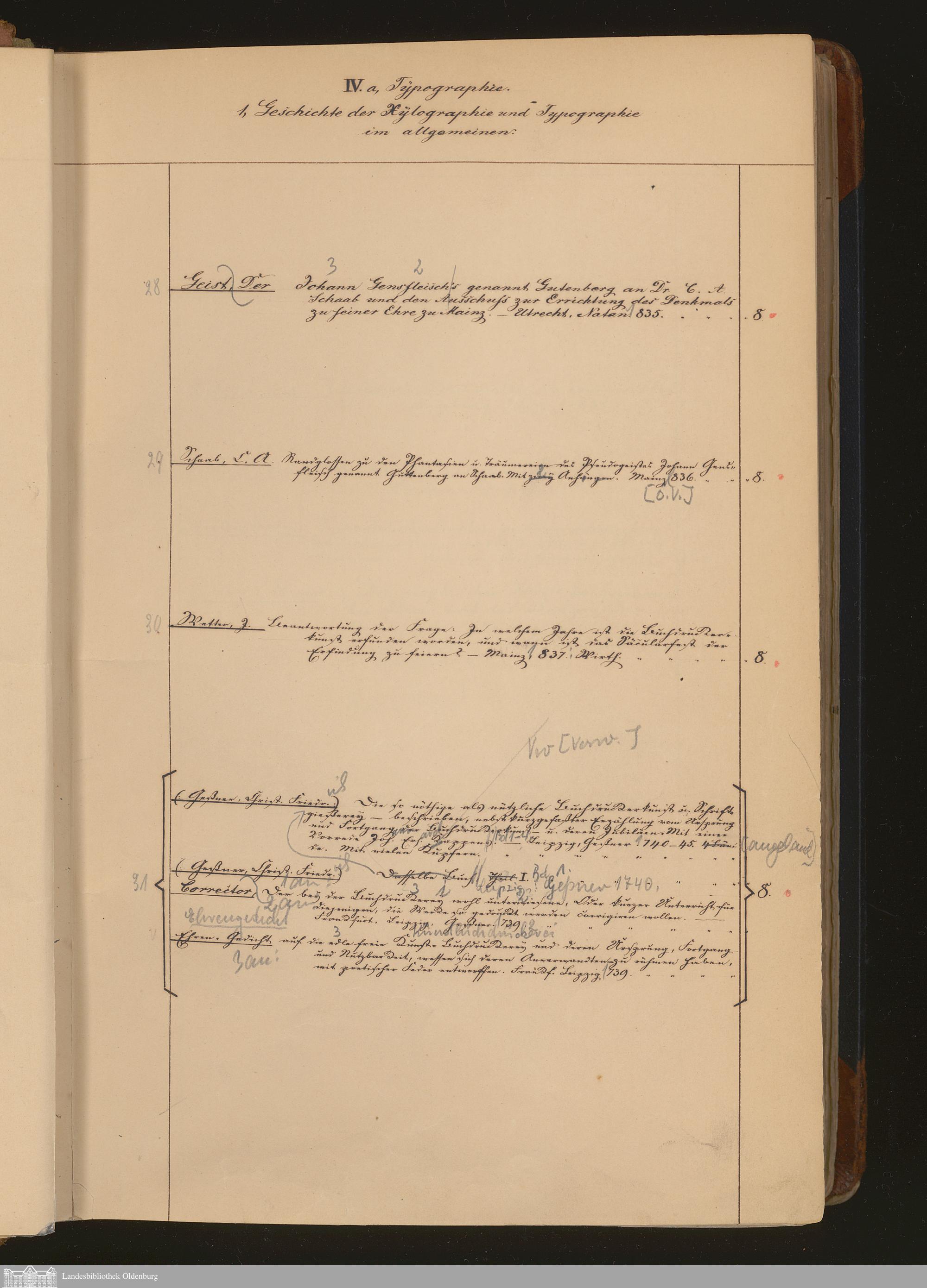 [Litteraturgeschichte - IV.a, Tÿpographie. IV.b, Bücherkunde. V. Bibliothekswesen]...