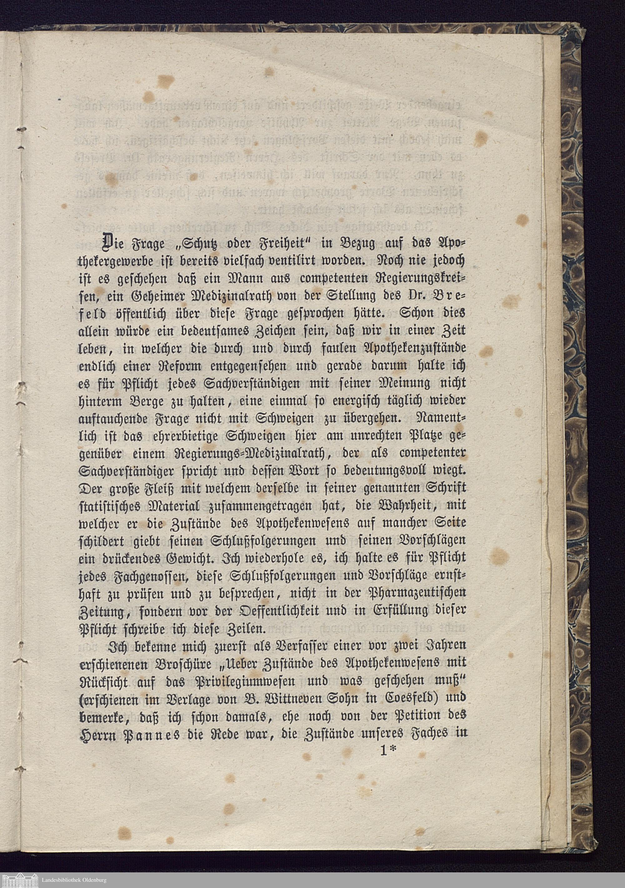 [Beleuchtung der Schrift des Königl. Geheimen Medizinal- und Regierungsrathes Dr. Franz Brefeld "Die Apotheke. Schutz oder Freiheit?"]