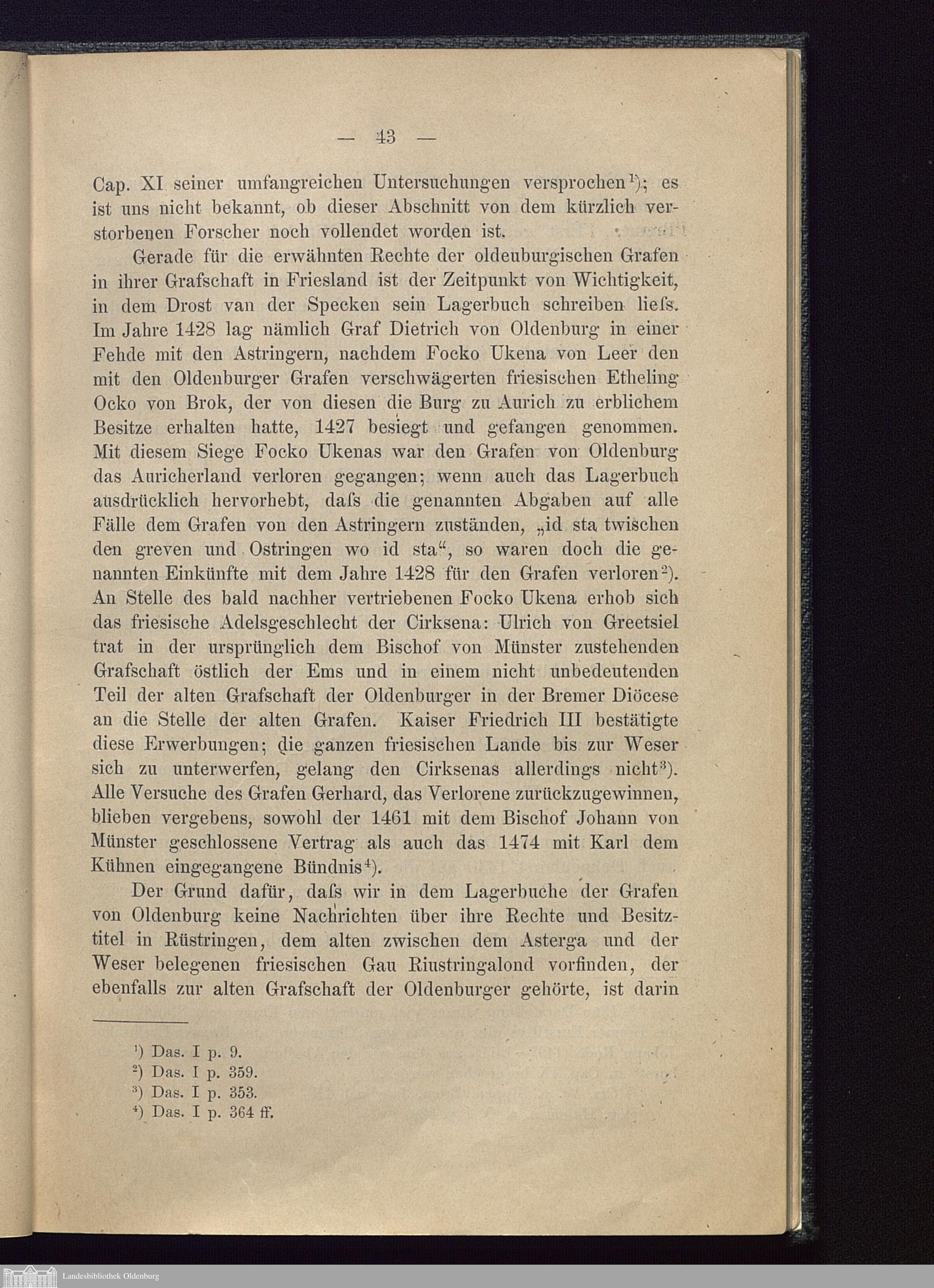 Capitel IV. Des Drosten van der Specken Lagerbuch der Grafen von Oldenburg.
