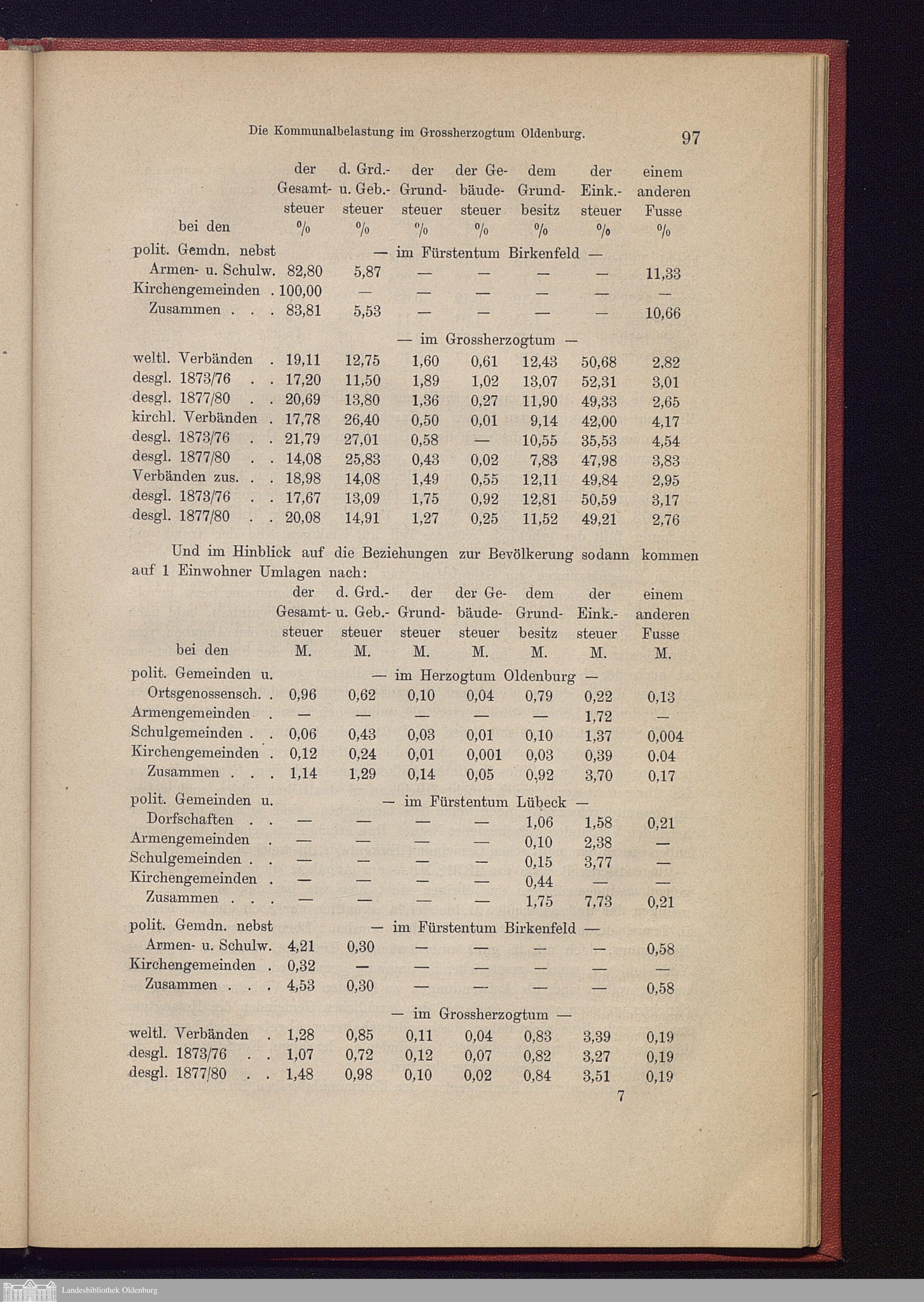 Die Kommunalbelastung im Großherzogtum Oldenburg