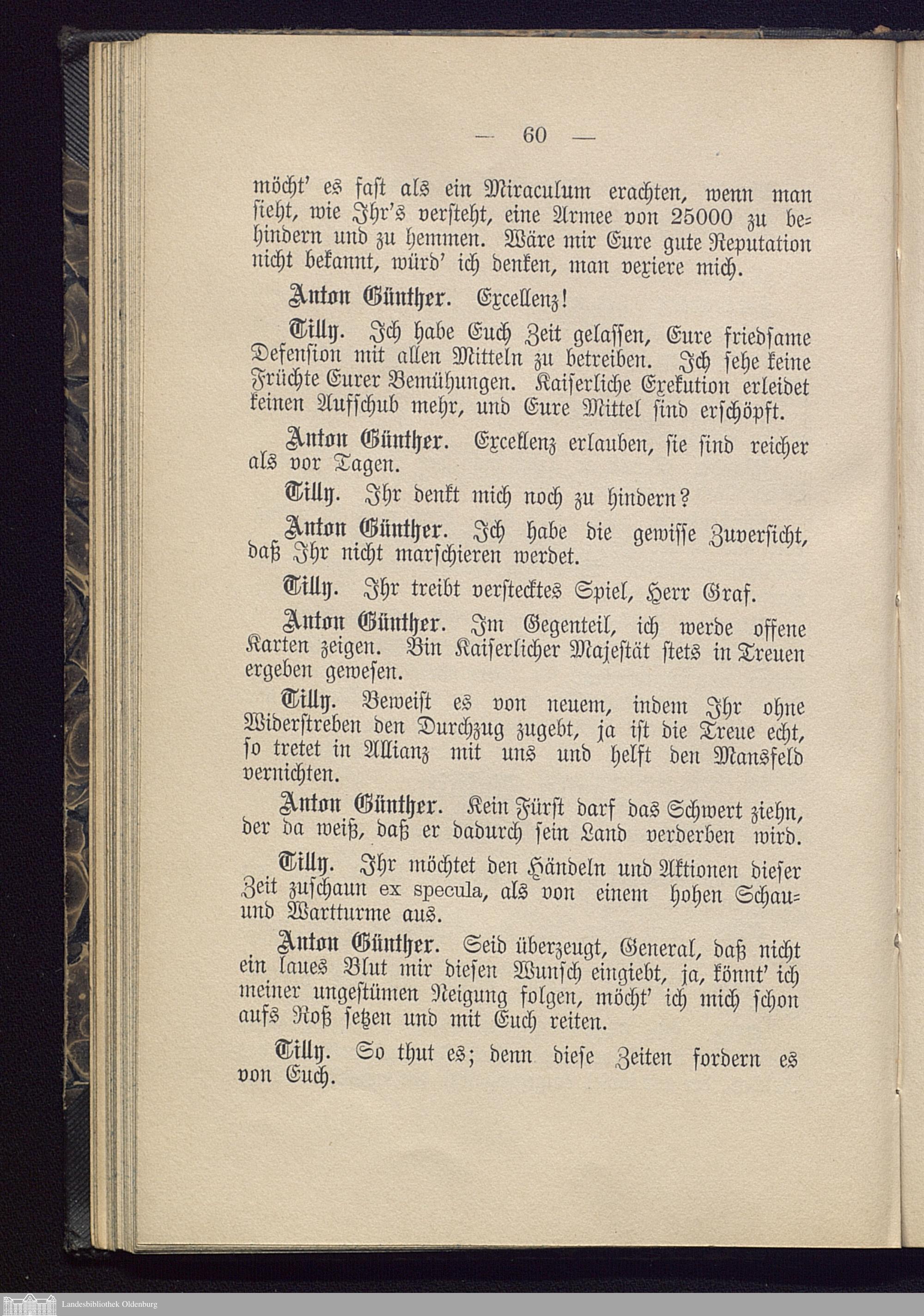 Graf Anton Günther oder Tilly in Oldenburg : ein historisches Schauspiel in vier Aufzügen aus der Zeit des 30jährigen Krieges / von Georg Ruseler