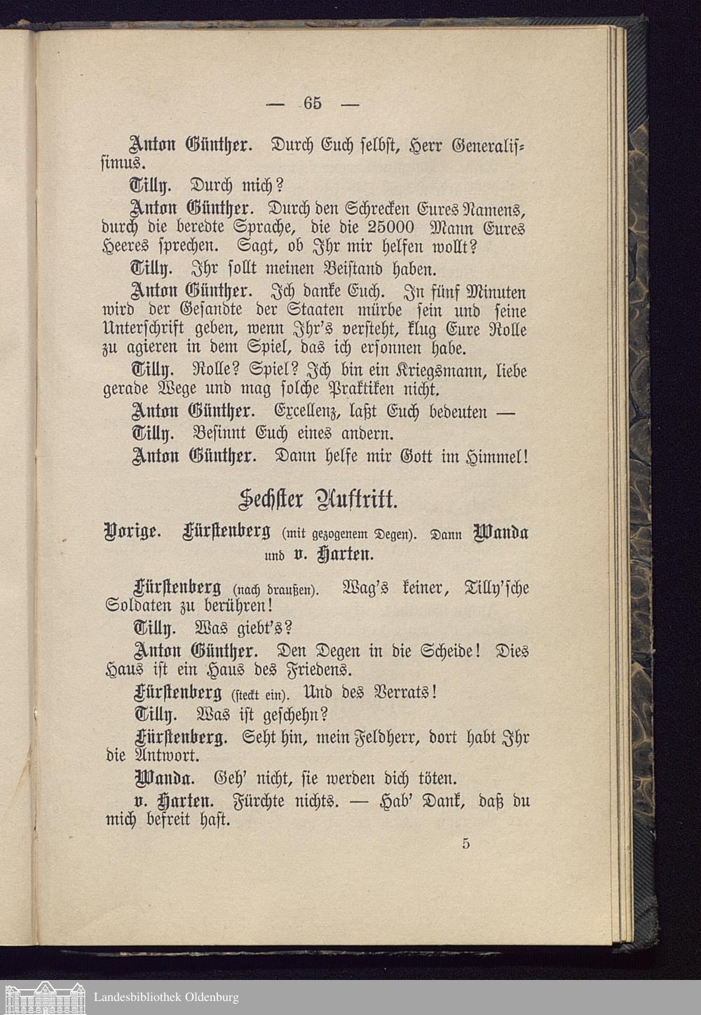Graf Anton Günther oder Tilly in Oldenburg : ein historisches Schauspiel in vier Aufzügen aus der Zeit des 30jährigen Krieges / von Georg Ruseler