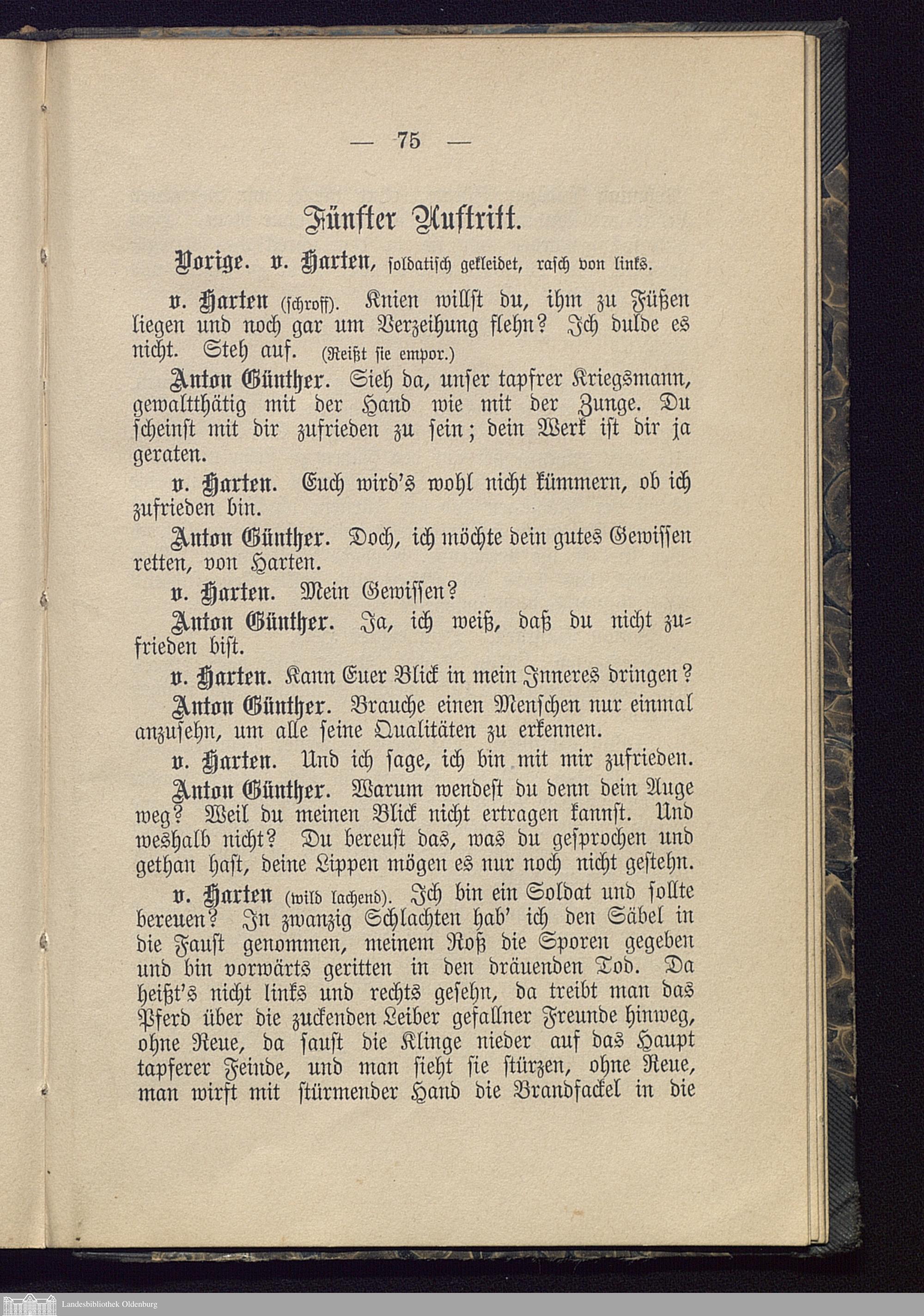 Fünfter Auftritt. Vorige. v. Harten, soldatisch gekleidet, rasch von links.