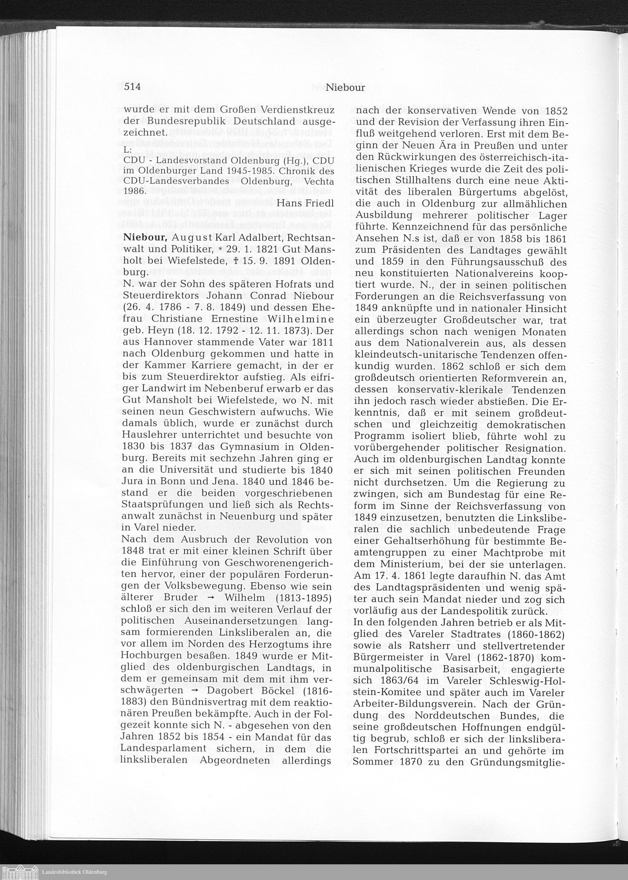 Biographisches Handbuch zur Geschichte des Landes Oldenburg / im Auftrag der Oldenburgischen Landschaft herausgegeben von Hans Friedl, Wolfgang Günther, Hilke Günther-Arndt, Heinrich Schmidt