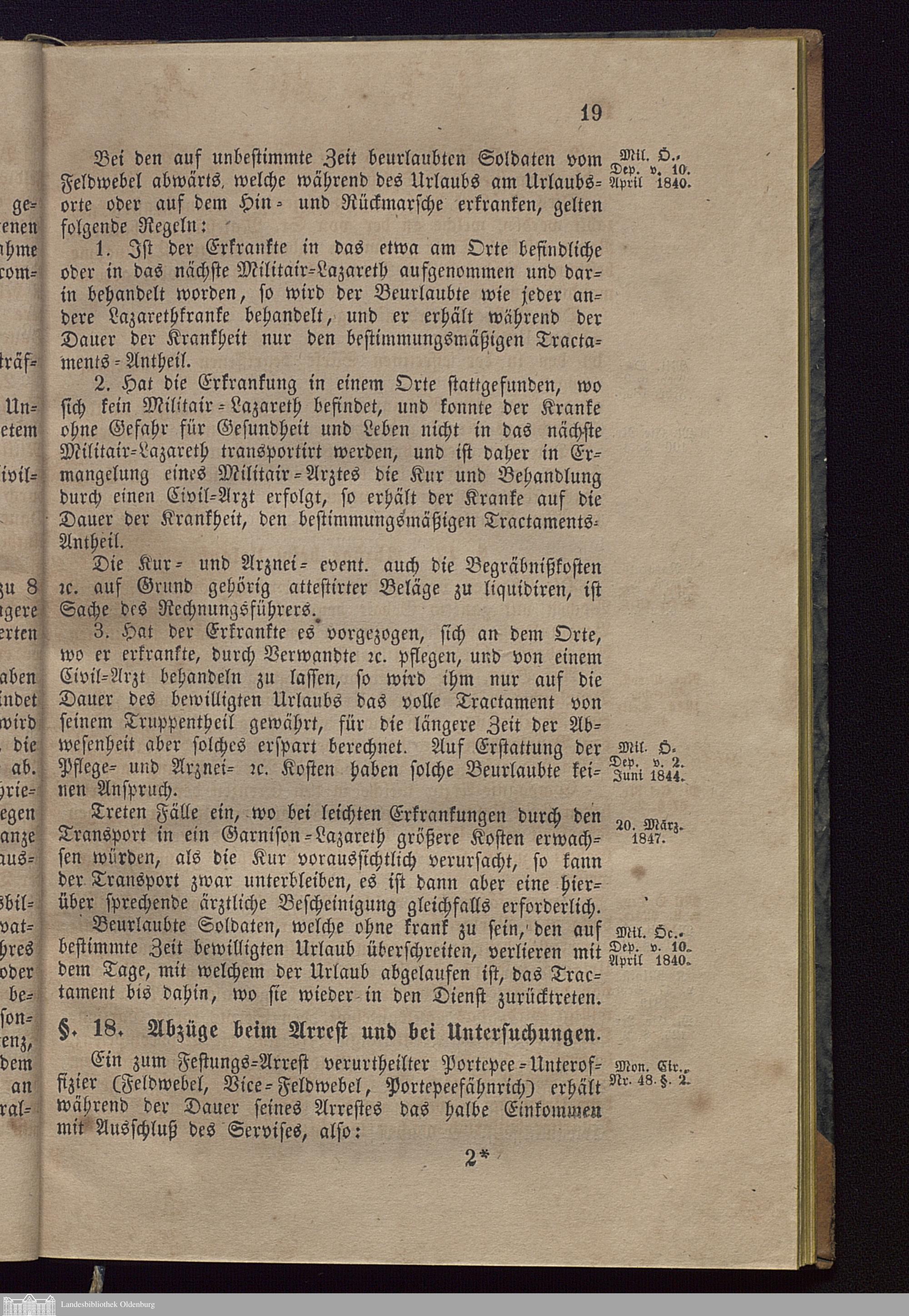 §. 18. Abzüge beim Arrest und bei Untersuchungen.