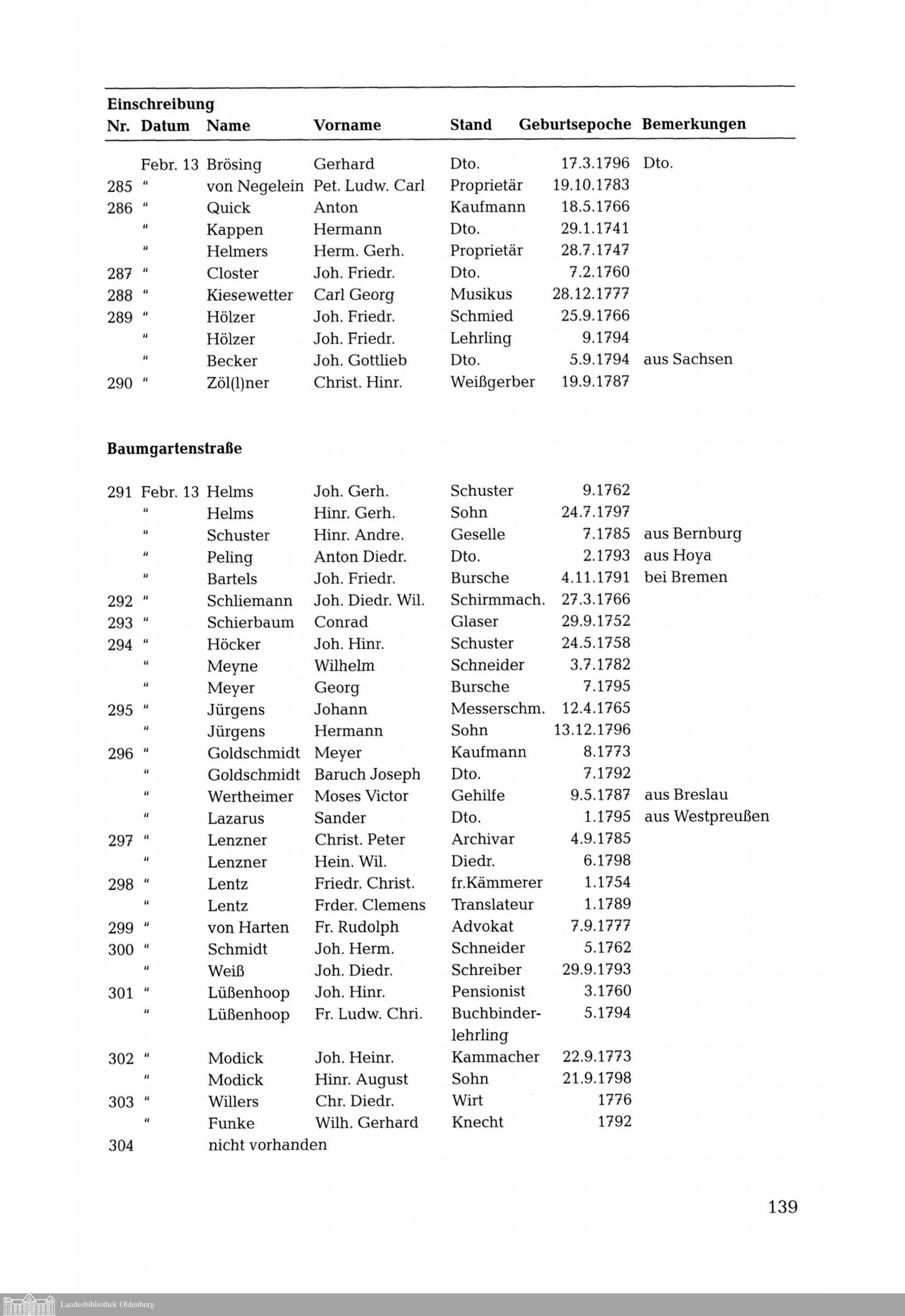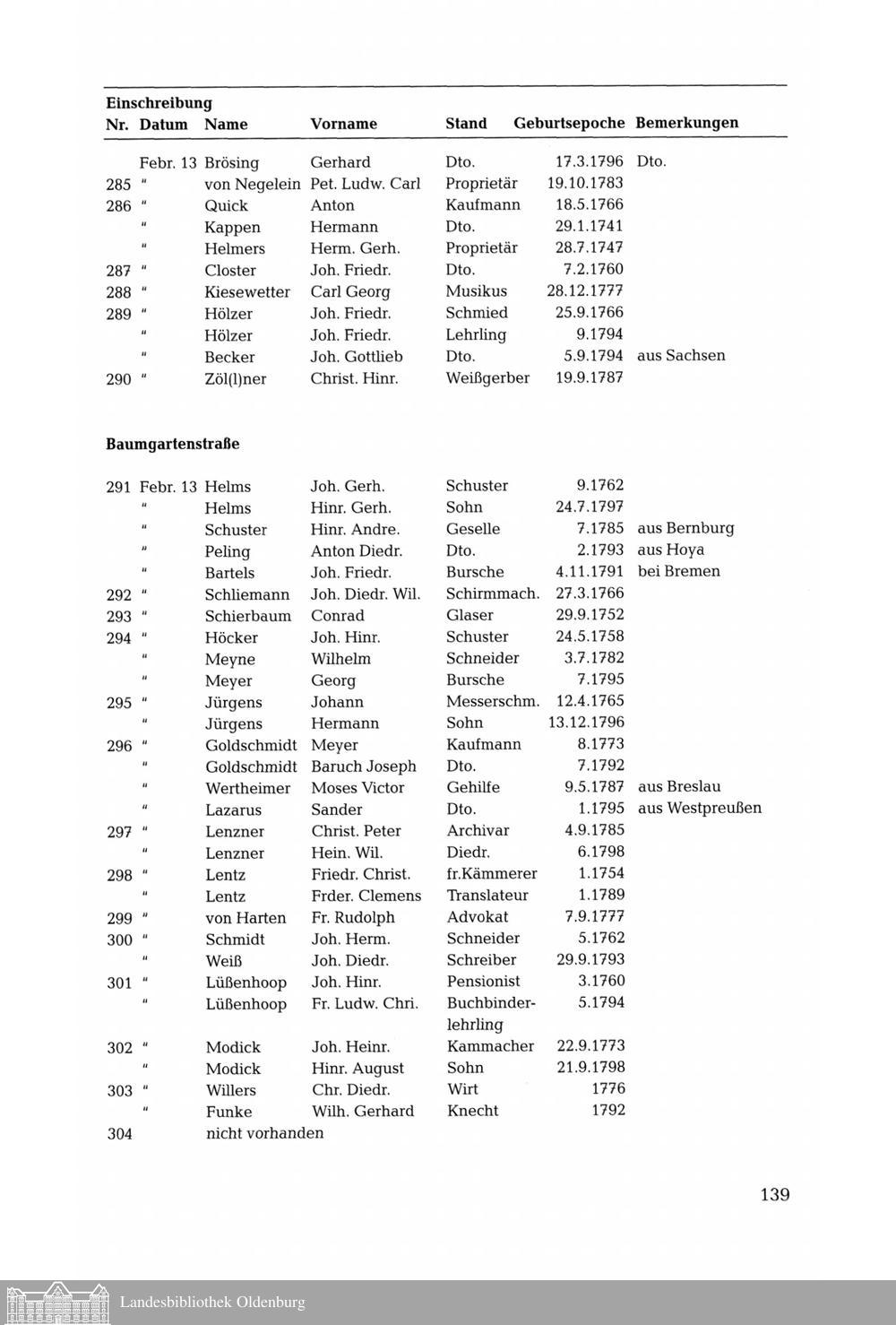 Bürgerliste der Stadt Oldenburg aus der französischen Besatzungszeit im Jahre 1812....