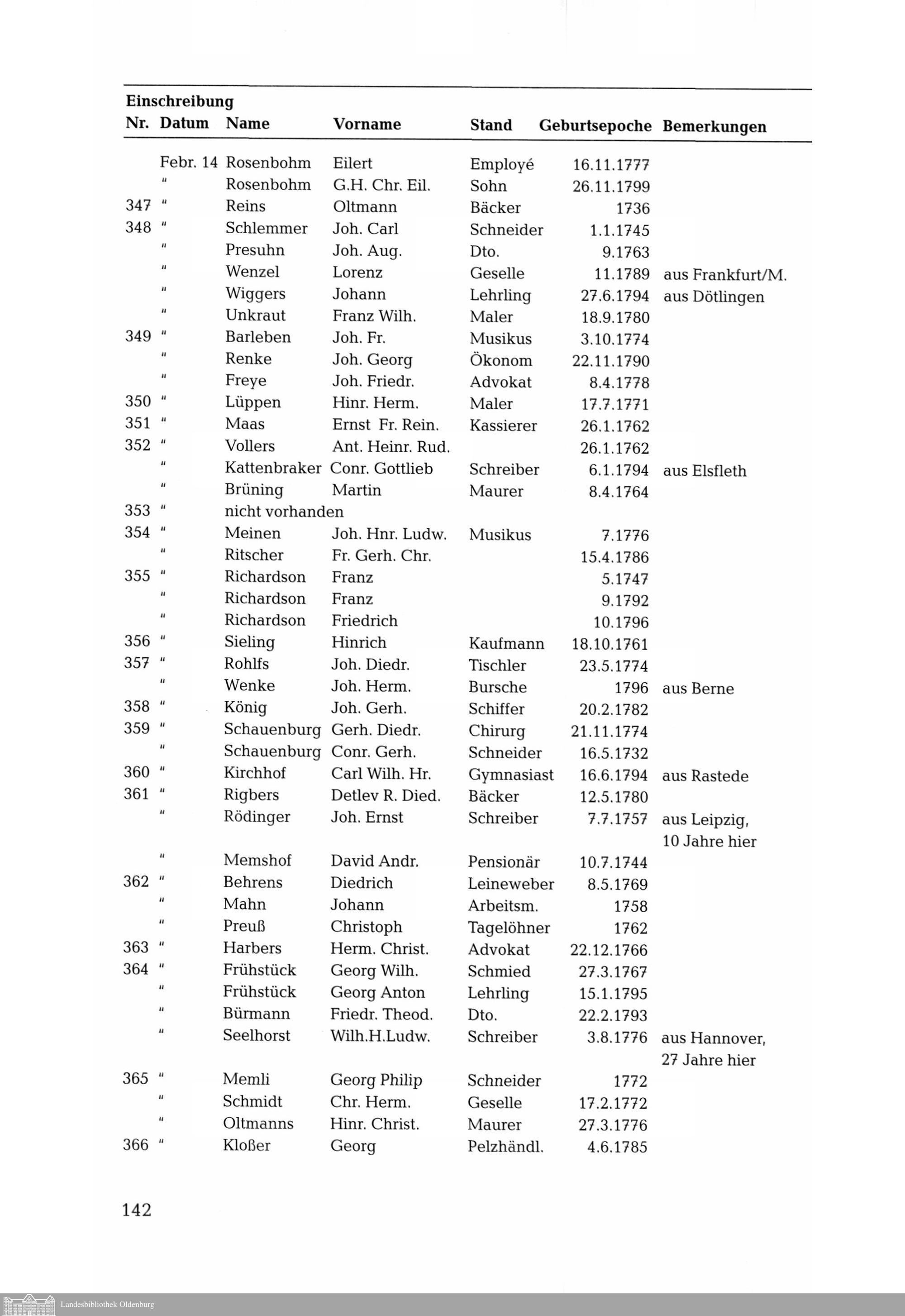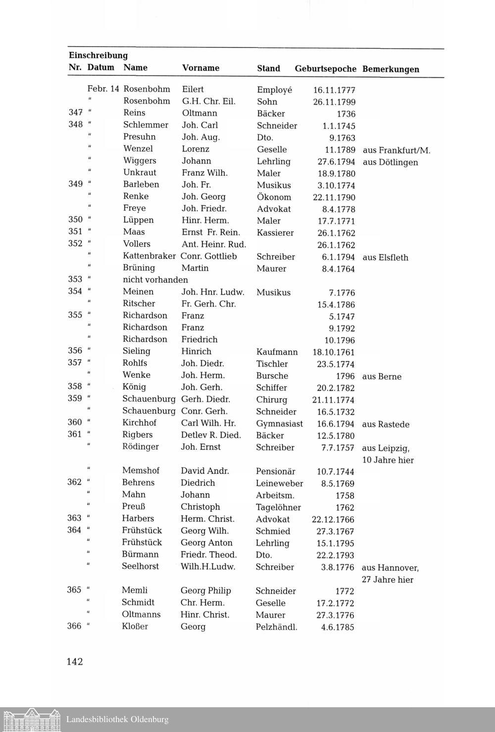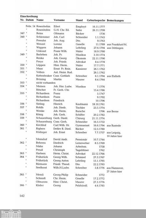 Bürgerliste der Stadt Oldenburg aus der französischen Besatzungszeit im Jahre 1812....