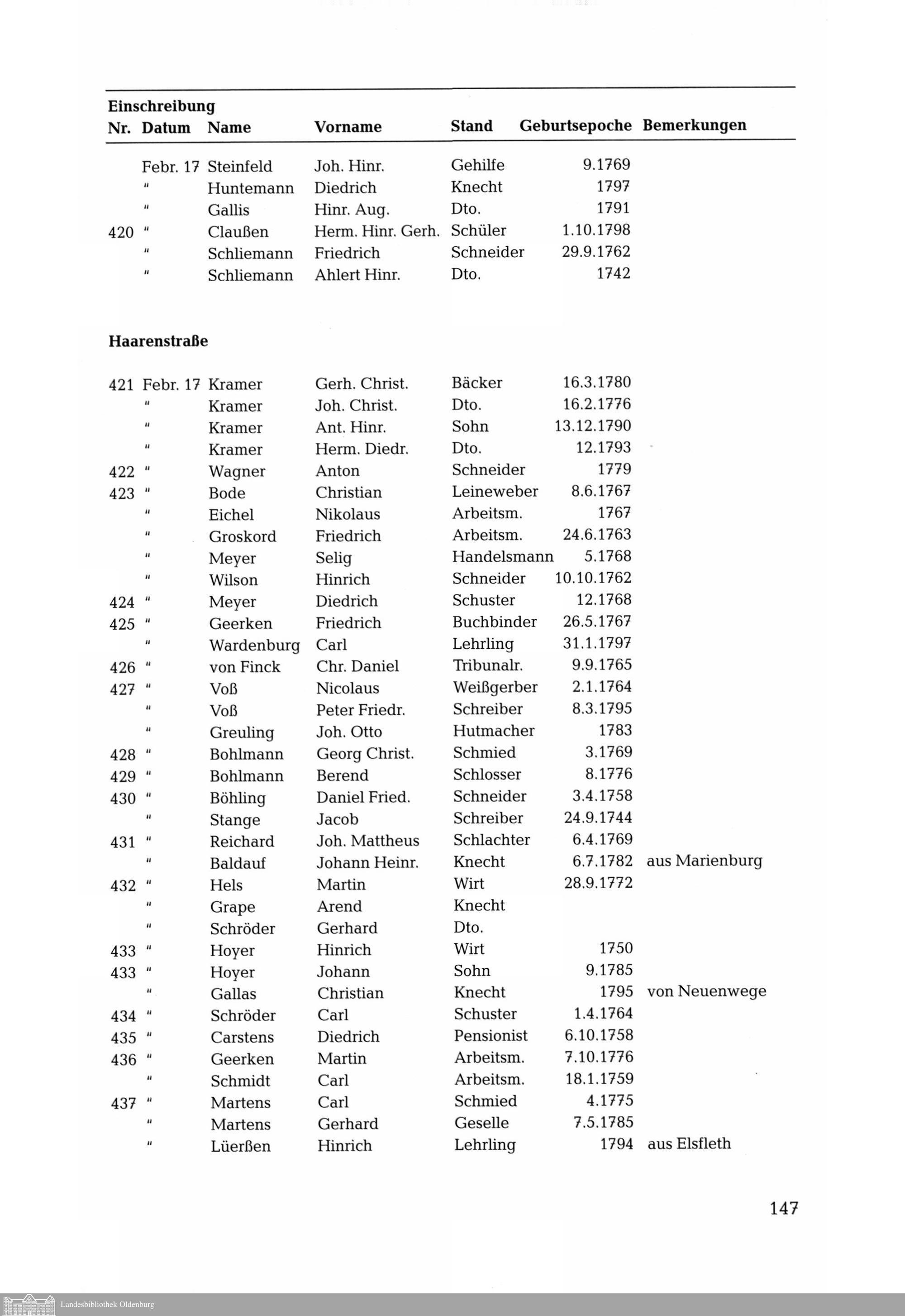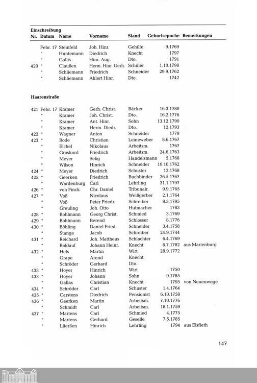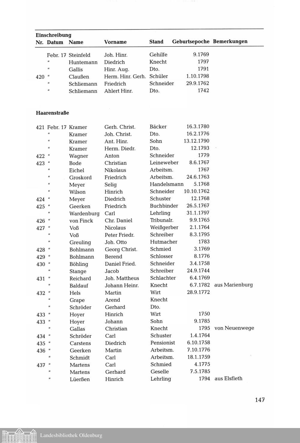 Bürgerliste der Stadt Oldenburg aus der französischen Besatzungszeit im Jahre 1812....