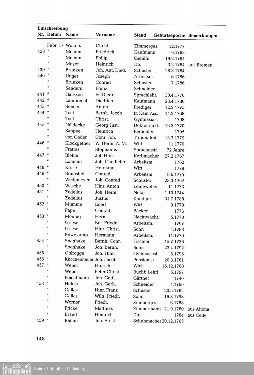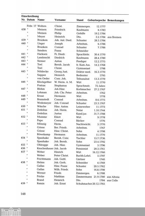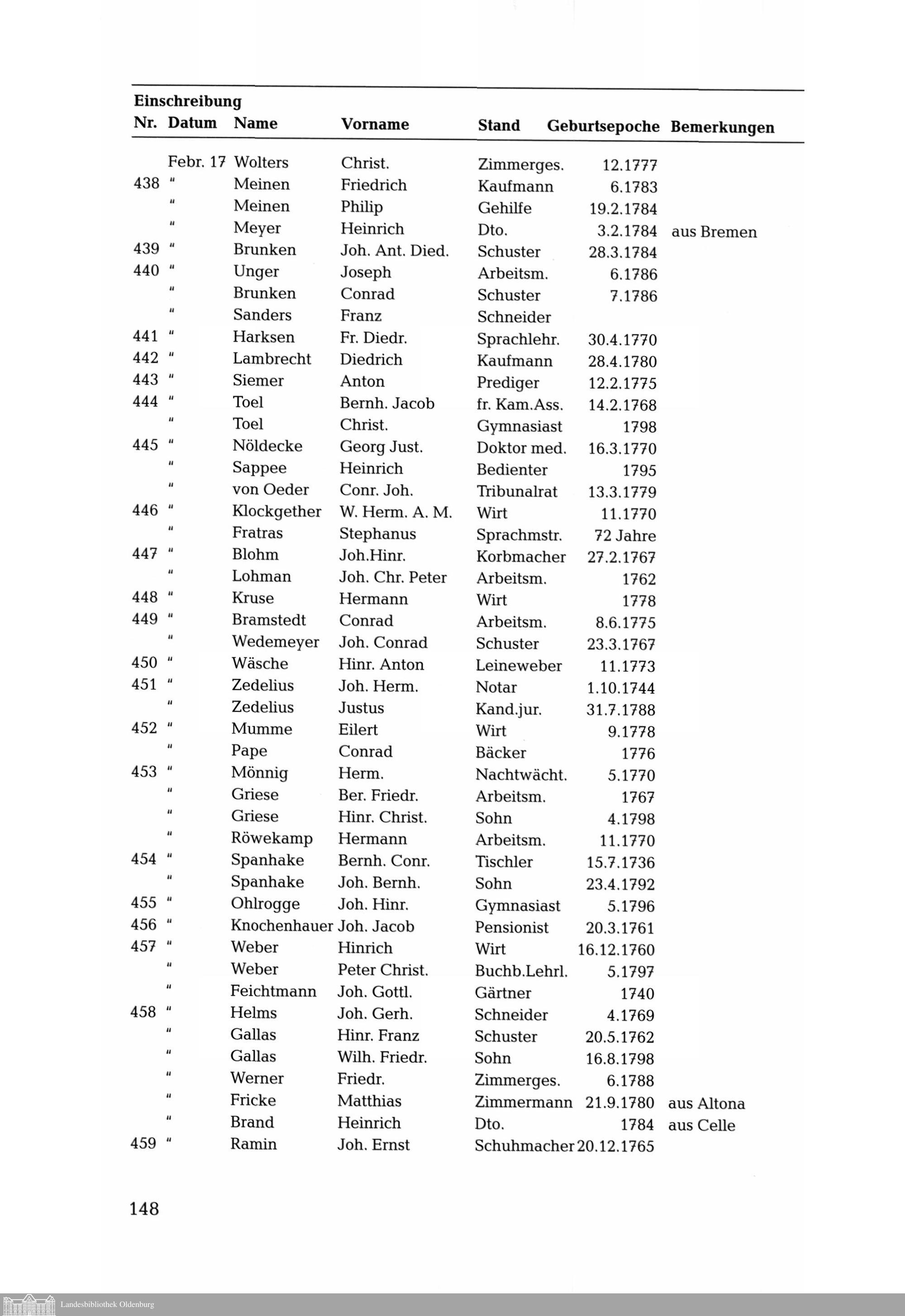 Bürgerliste der Stadt Oldenburg aus der französischen Besatzungszeit im Jahre 1812....