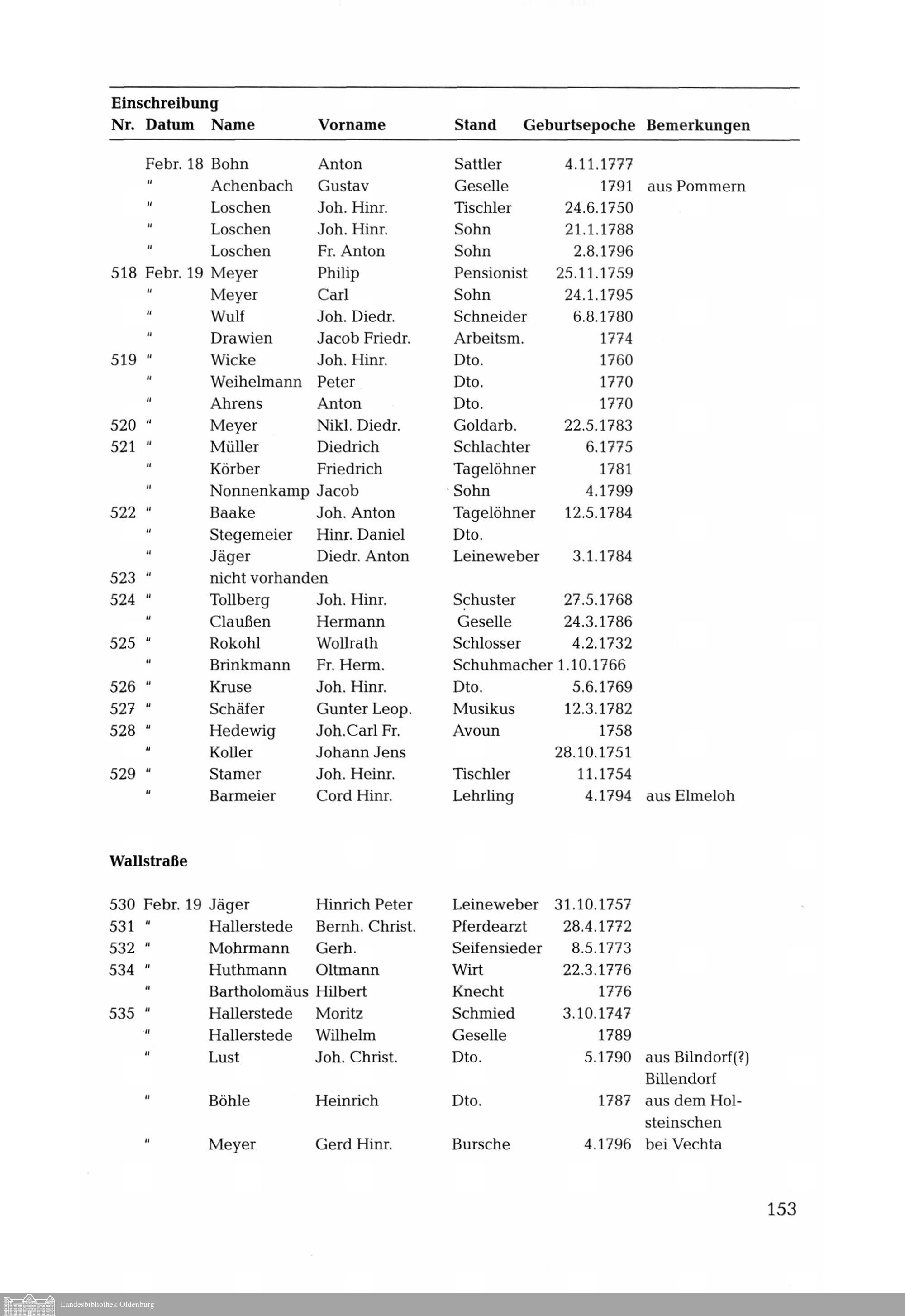 Bürgerliste der Stadt Oldenburg aus der französischen Besatzungszeit im Jahre 1812....