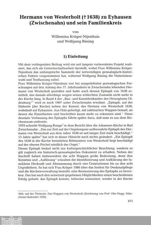 Hermann von Westerholt (†1638) zu Eyhausen (Zwischenahn) und sein Familienkreis....