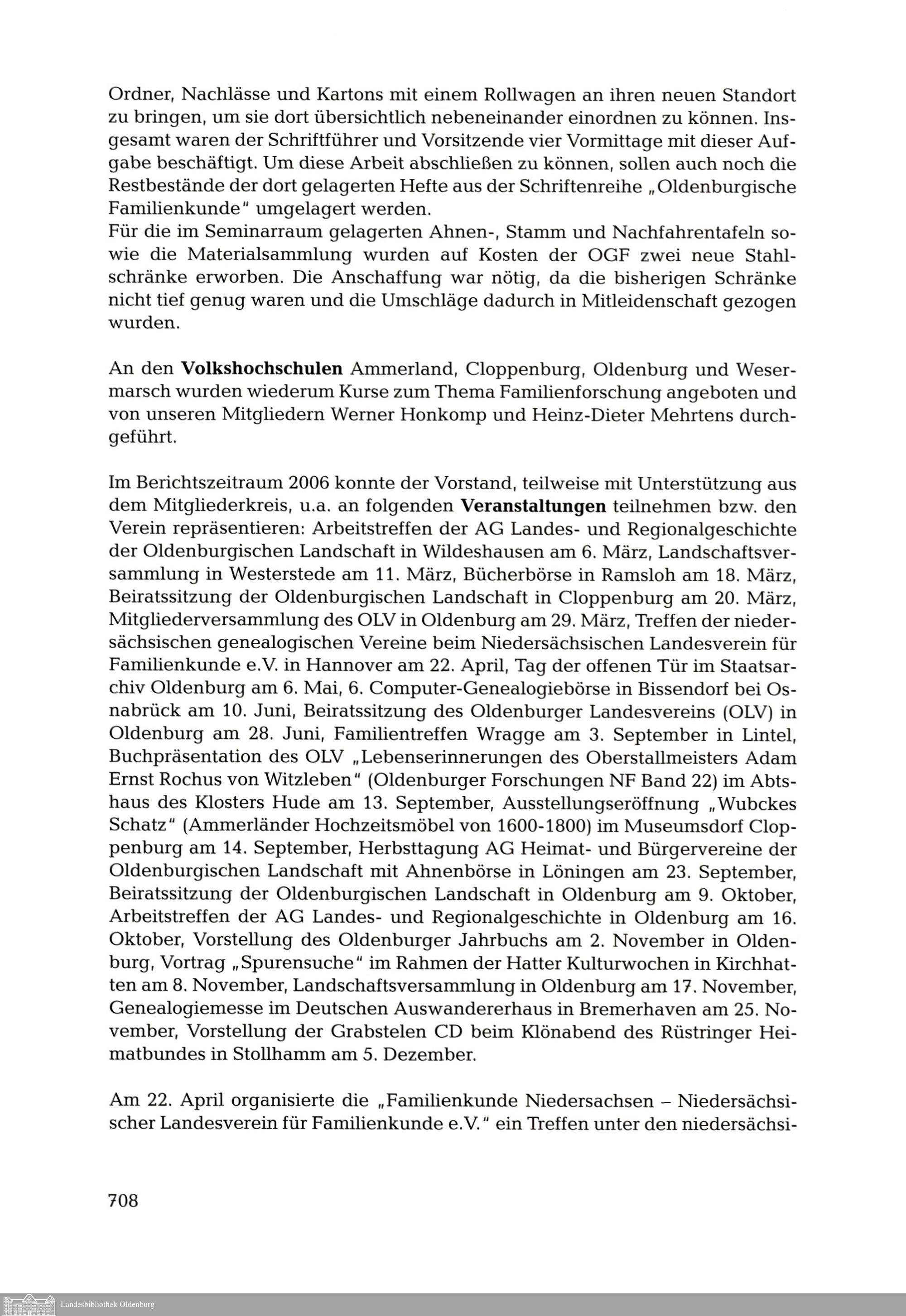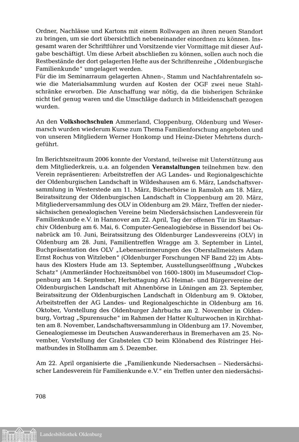 Jahresbericht der Oldenburgischen Gesellschaft für Familienkunde e.V. für das Jahr...