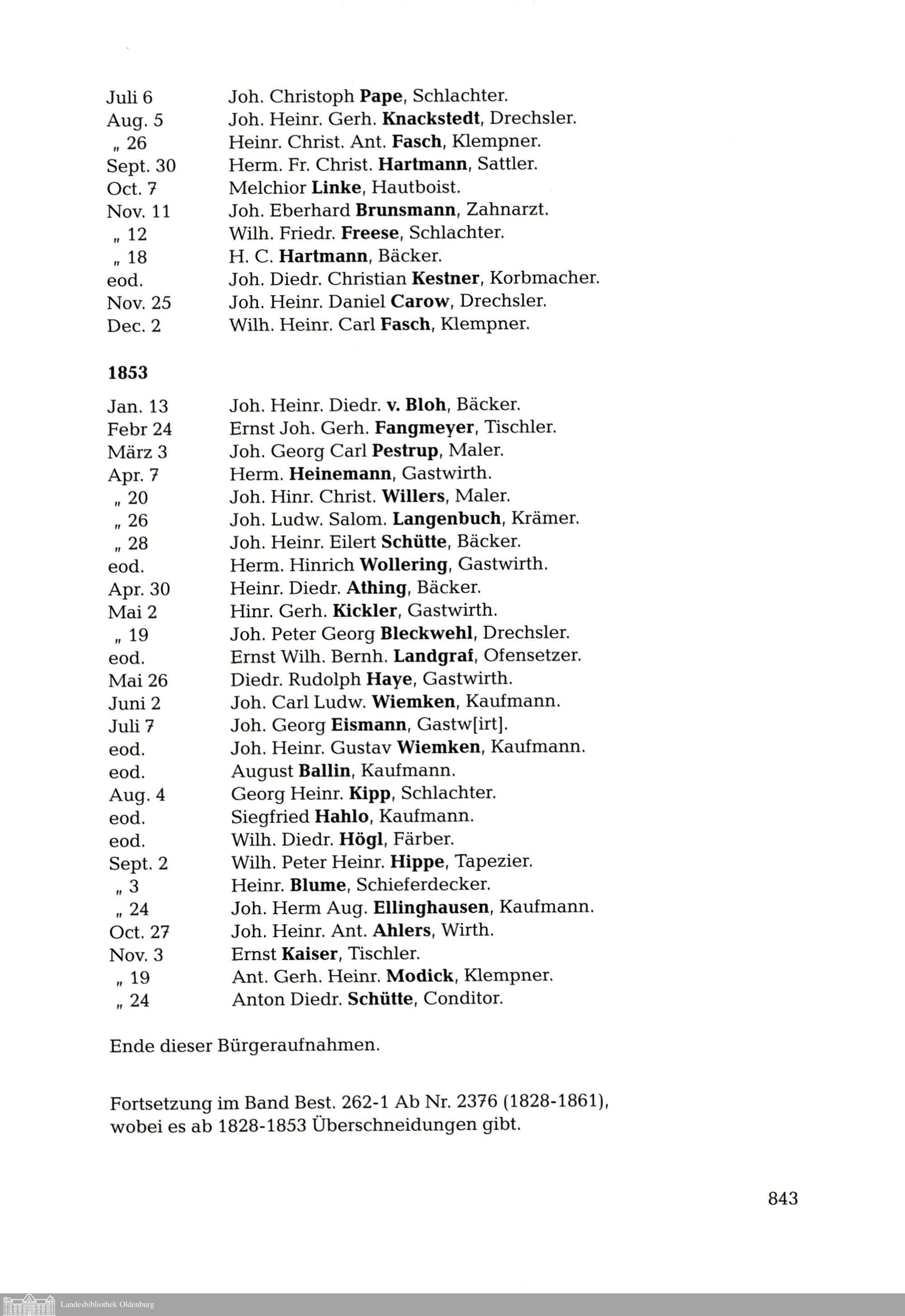 Buch der Bürgeraufnahmen der Stadt Oldenburg von 1740 bis 1853. Bearbeitet von Joachim...