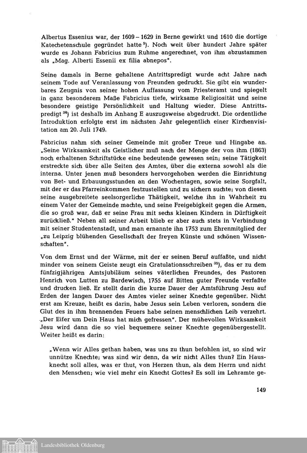 [Das Oldenburgische Pastorengeschlecht Fabricius. Von Wolfgang Büsing]