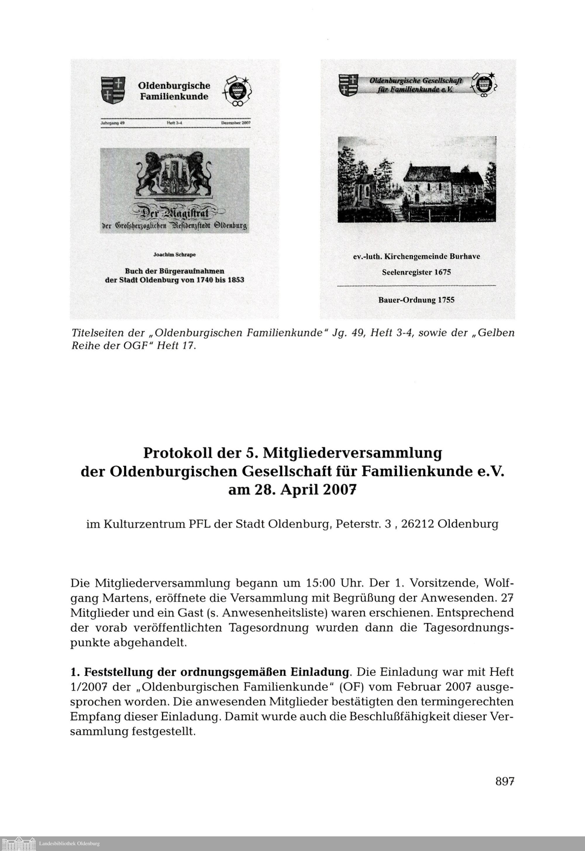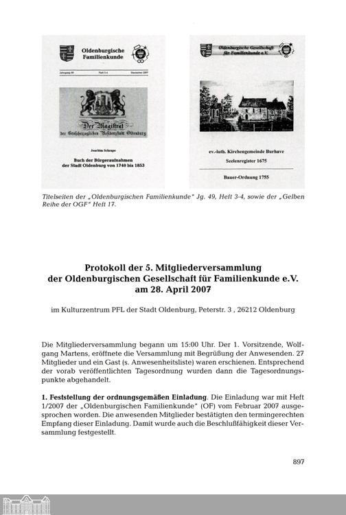 Protokoll der 5. Mitgliederversammlung der Oldenburgischen Gesellschaft für Familienkunde...