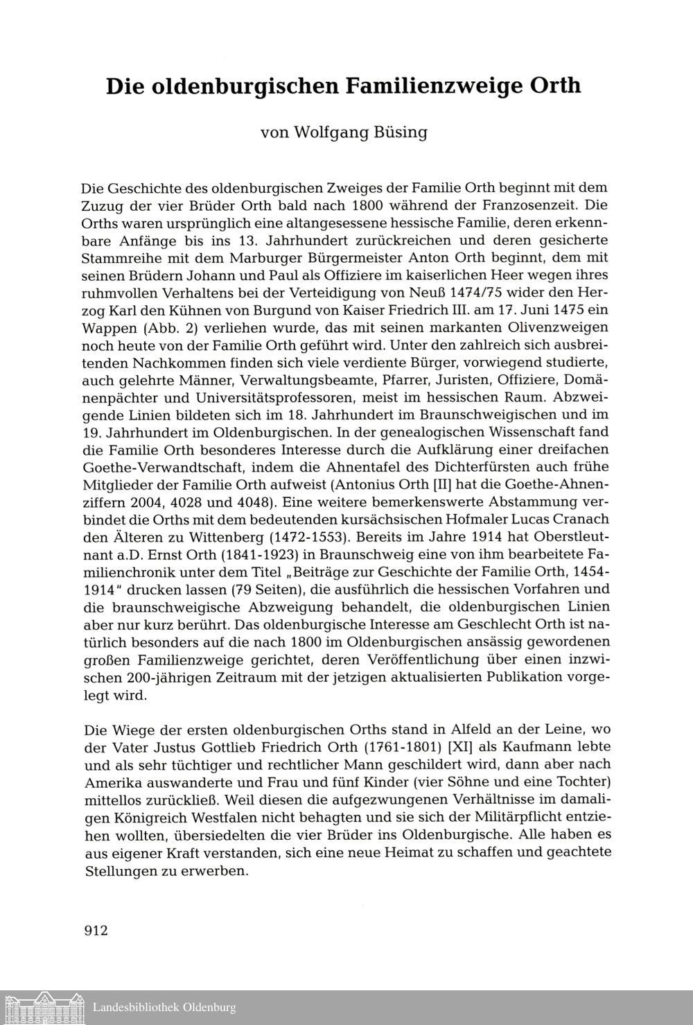 Die oldenburgischen Familienzweige Orth. Von Wolfgang Büsing