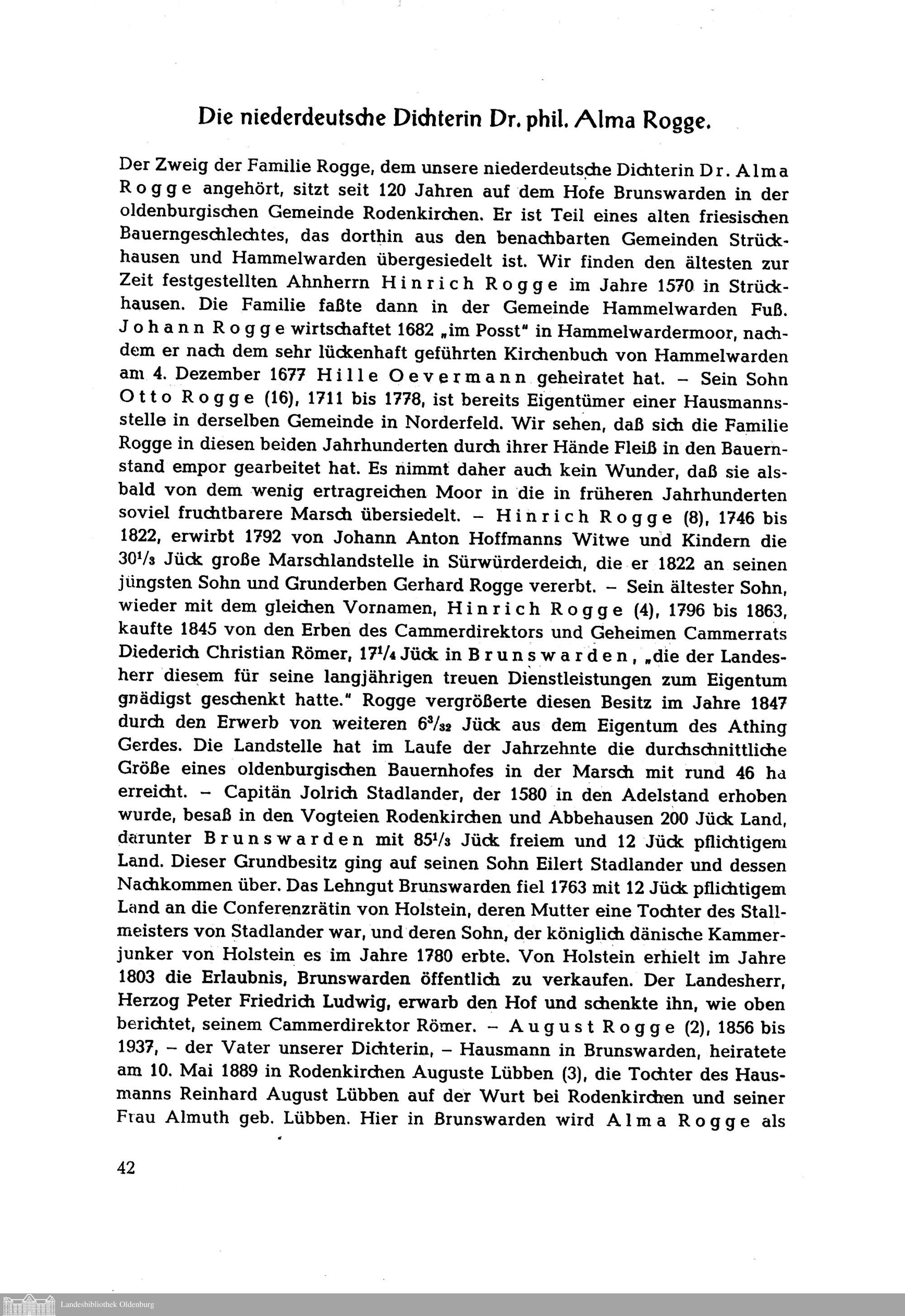 Die niederdeutsche Dichterin Dr. phil. Alma Rogge.