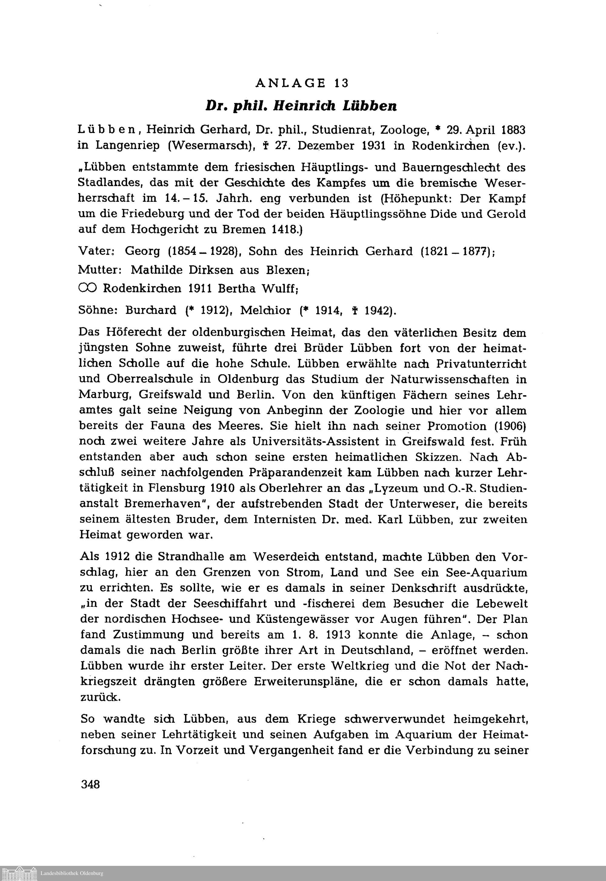 Stammfolge des Geschlechts Lübben in Butjadingen und Stadland (1300 - 1966). Von...