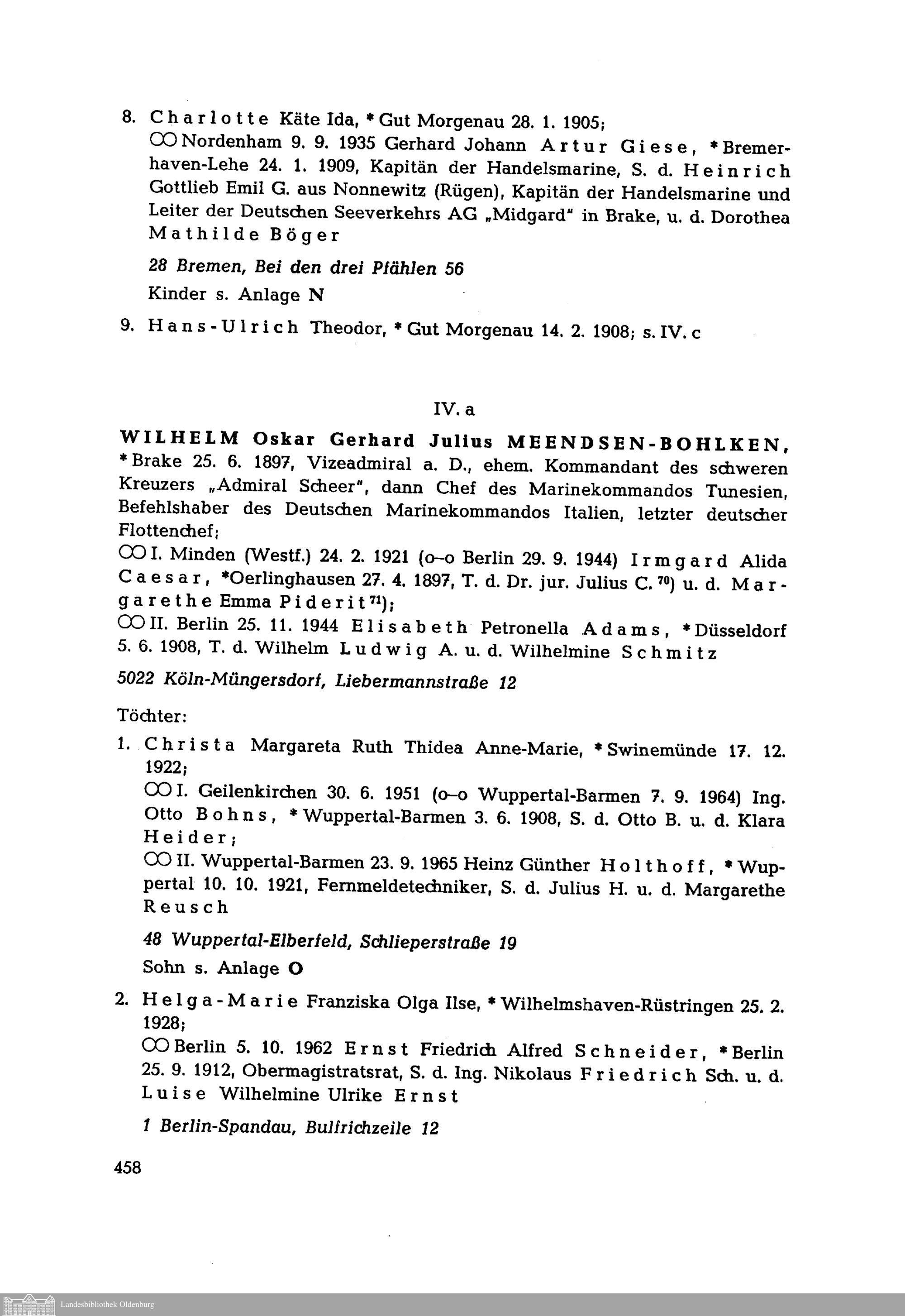 Meendsen-Bohlken. Beiträge zur Geschichte und Genealogie einer friesischen Familie...