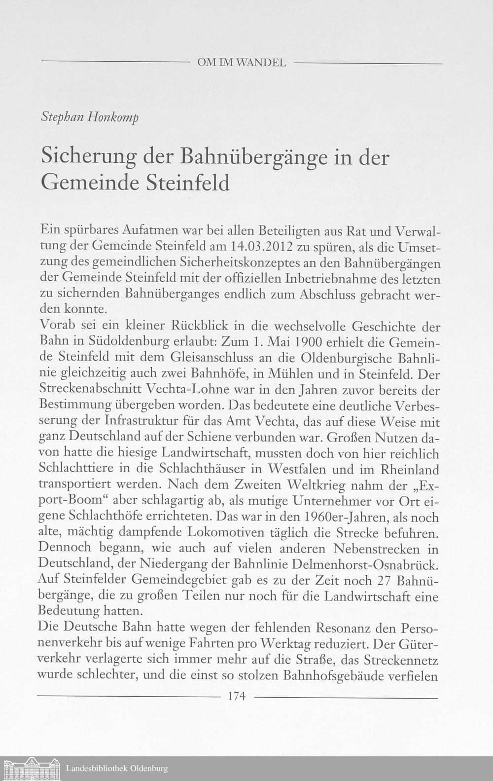 Stephan Honkomp: Sicherung der Bahnübergänge in der Gemeinde Steinfeld