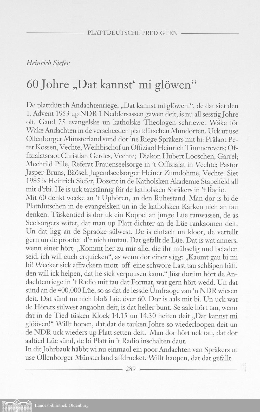 Heinrich Siefer: 60 Johre "Dat kannst' mi glöwen"