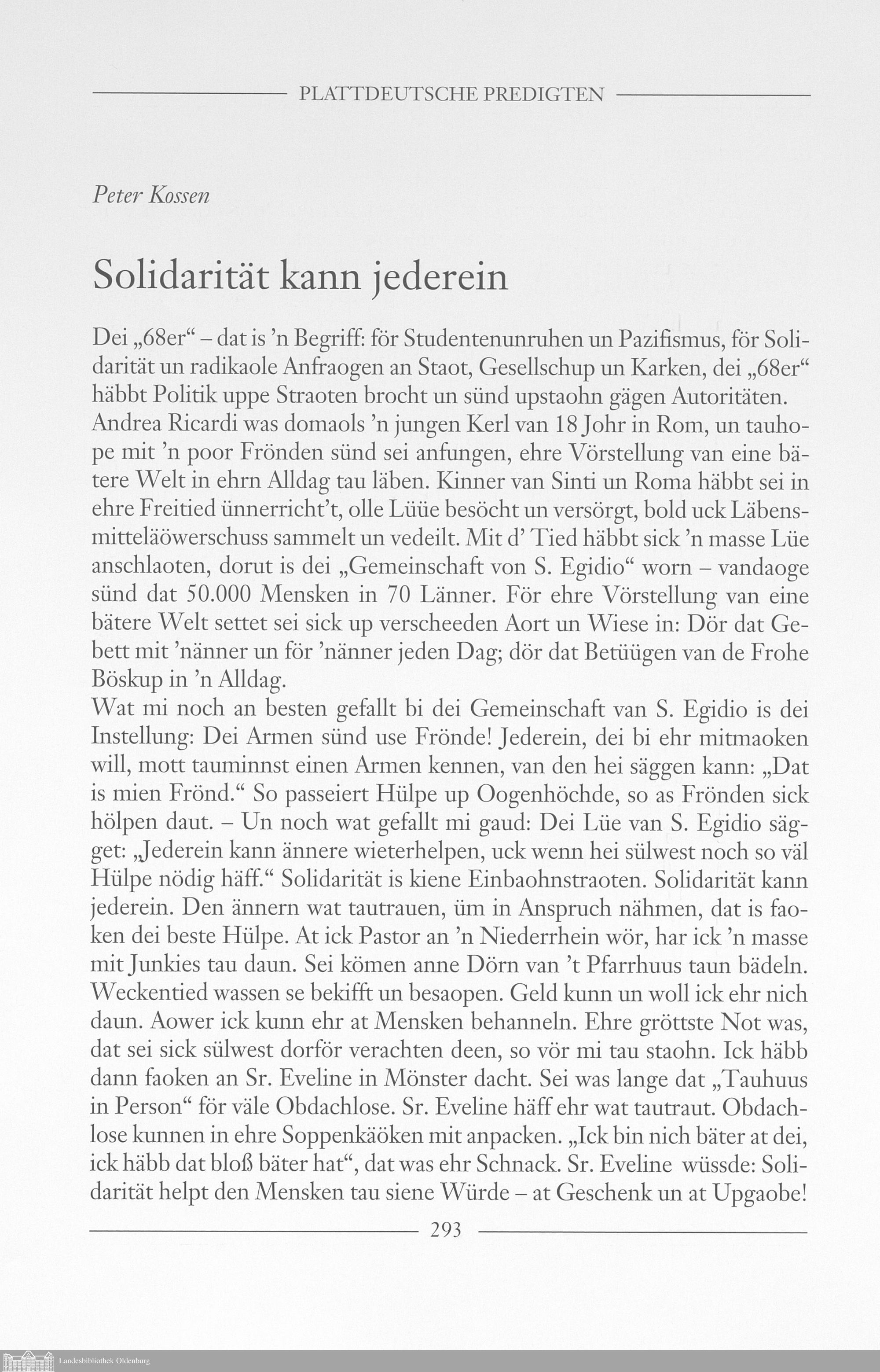 Peter Kossen: Solidarität kann jederein