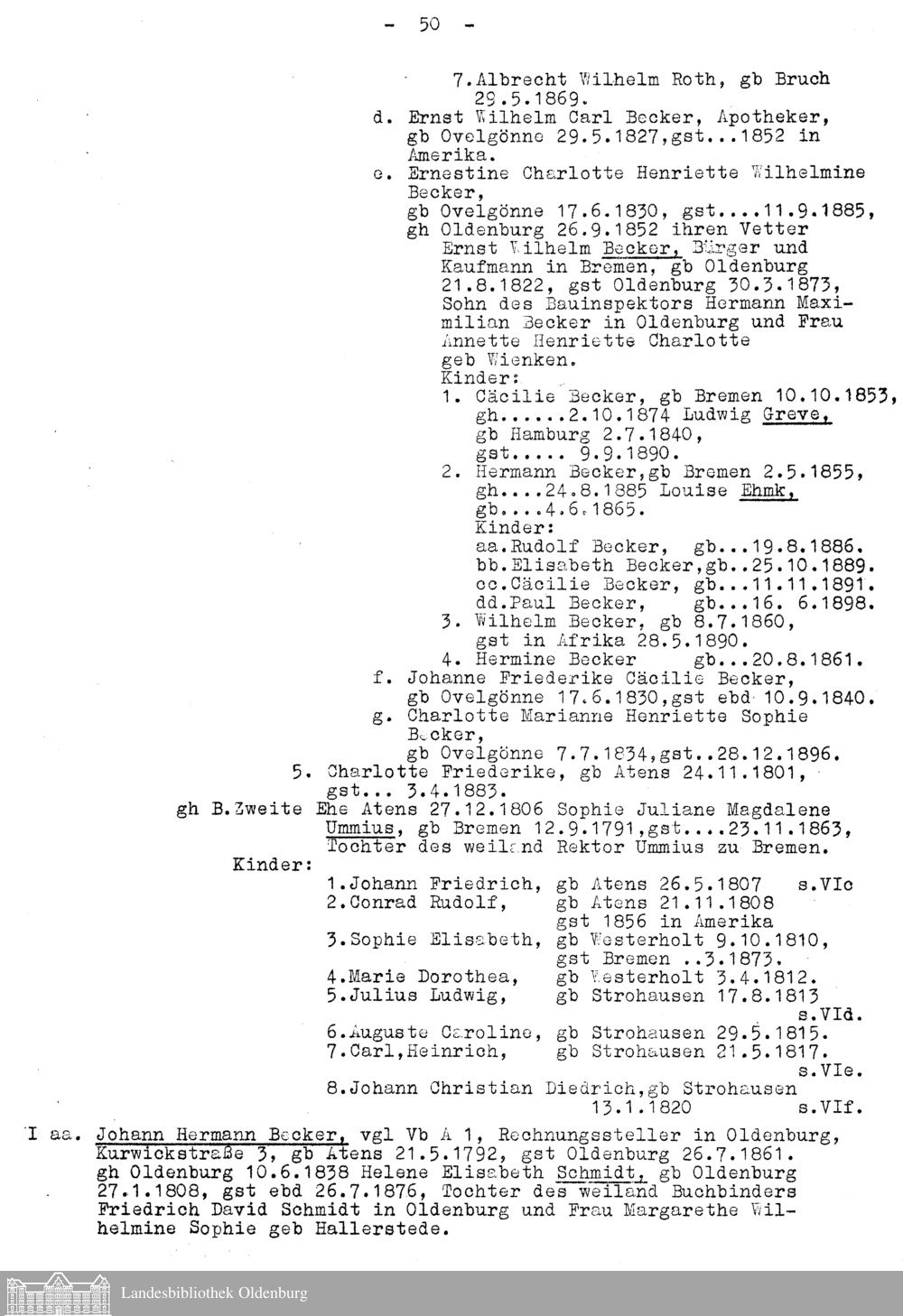 II. Nachtrag zur Stammfolge der Familie Becker in den Landkreisen Wittmund und W...