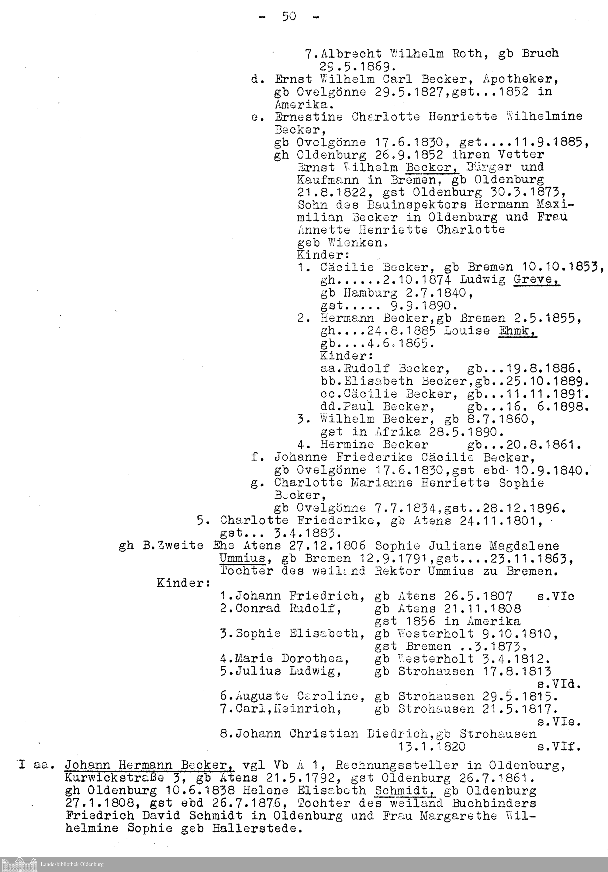 B. Oldenburgischer Ast der Familie Becker.