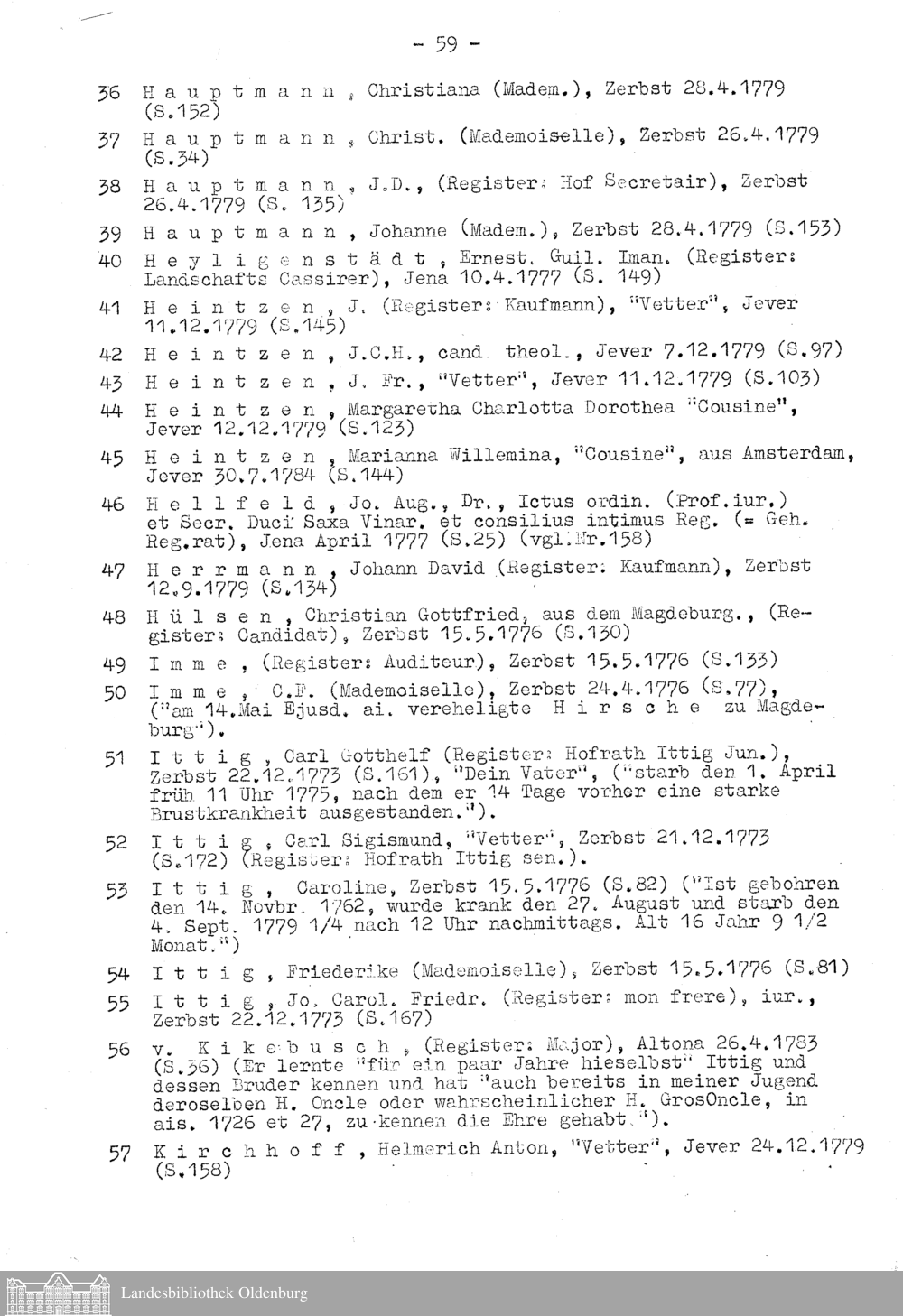 A) Stammbuch des Regierungsrats und Landvogts Ittig zu Jever. 1773 - 1804.