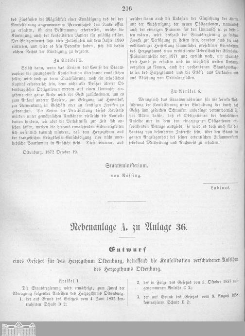 Verhandlungen der ... Versammlung des ... Landtags des Freistaats Oldenburg / Anlagen zu den Niederschriften und Berichten / Anlagen zu den Protokollen und Berichten