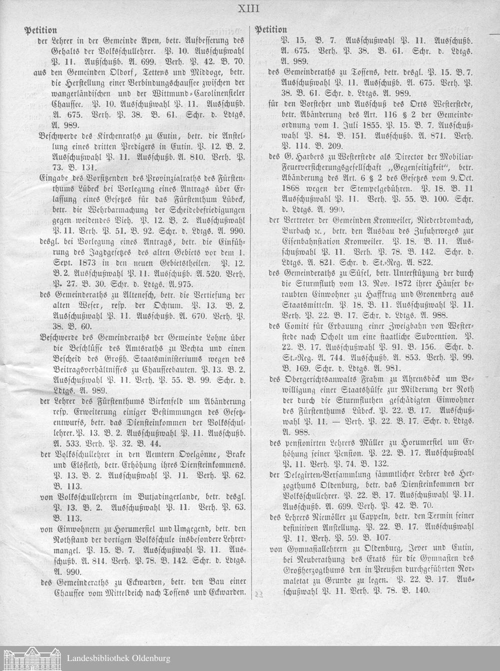 Verhandlungen des ... Allgemeinen Landtags des Großherzogtums Oldenburg / Alphabetisches Register