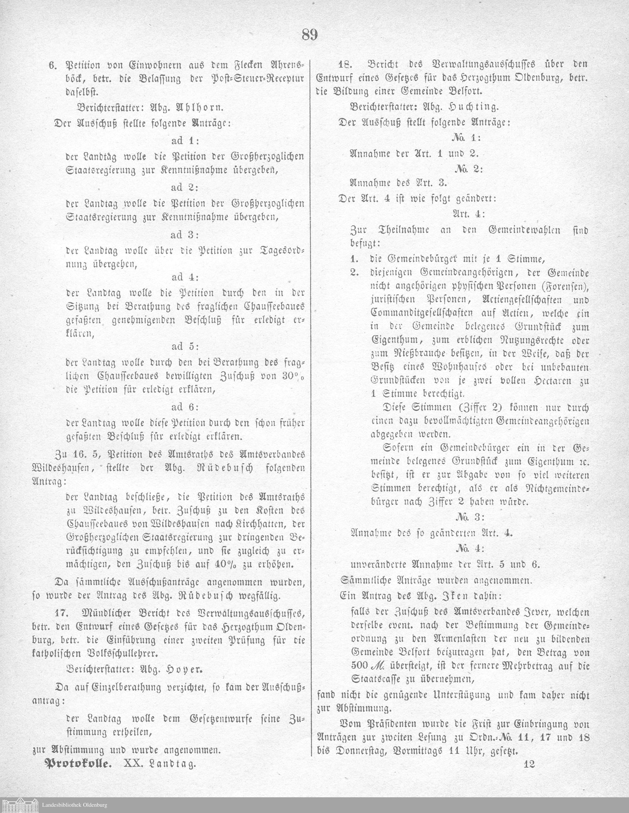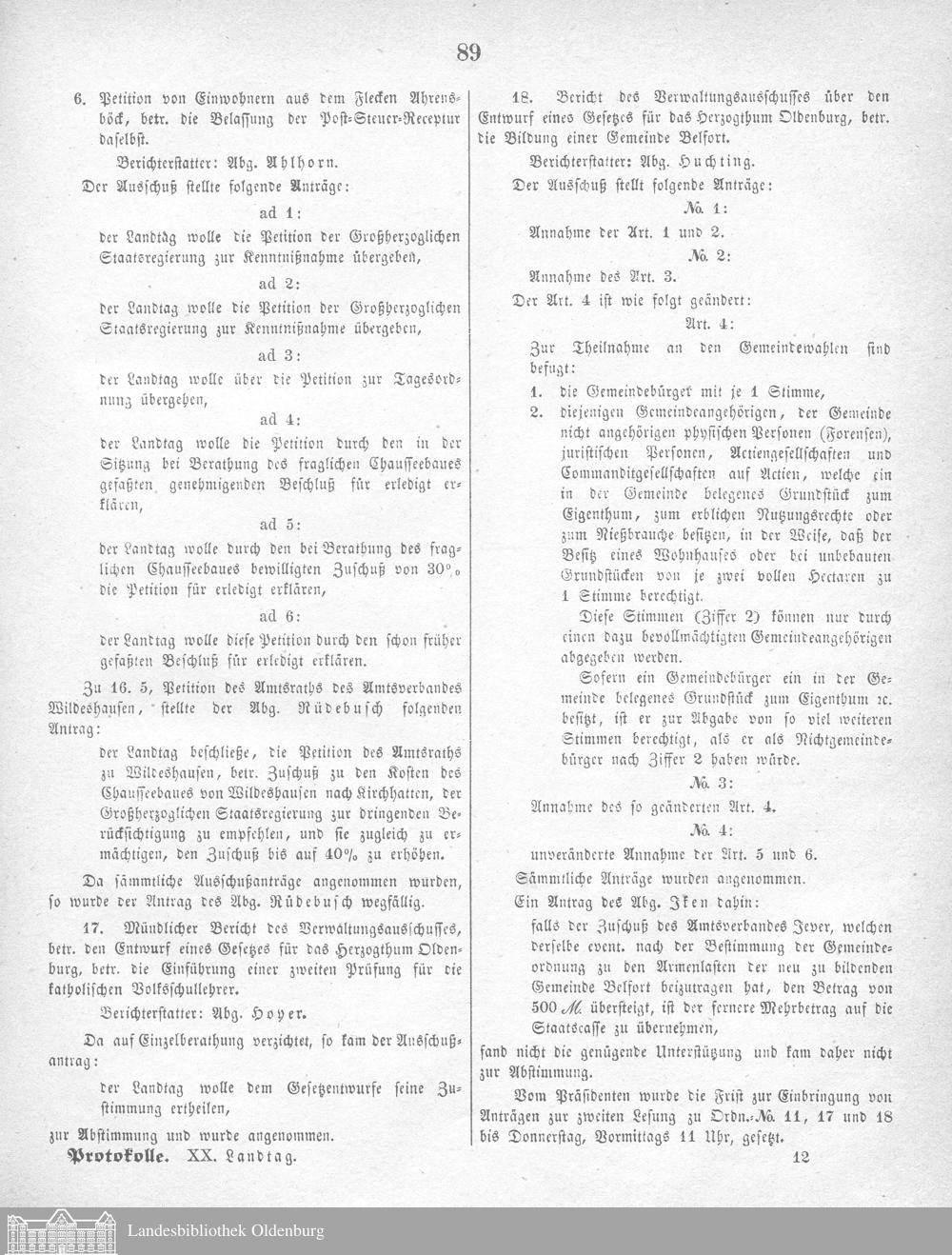 Verhandlungen des ... Allgemeinen Landtags des Großherzogtums Oldenburg