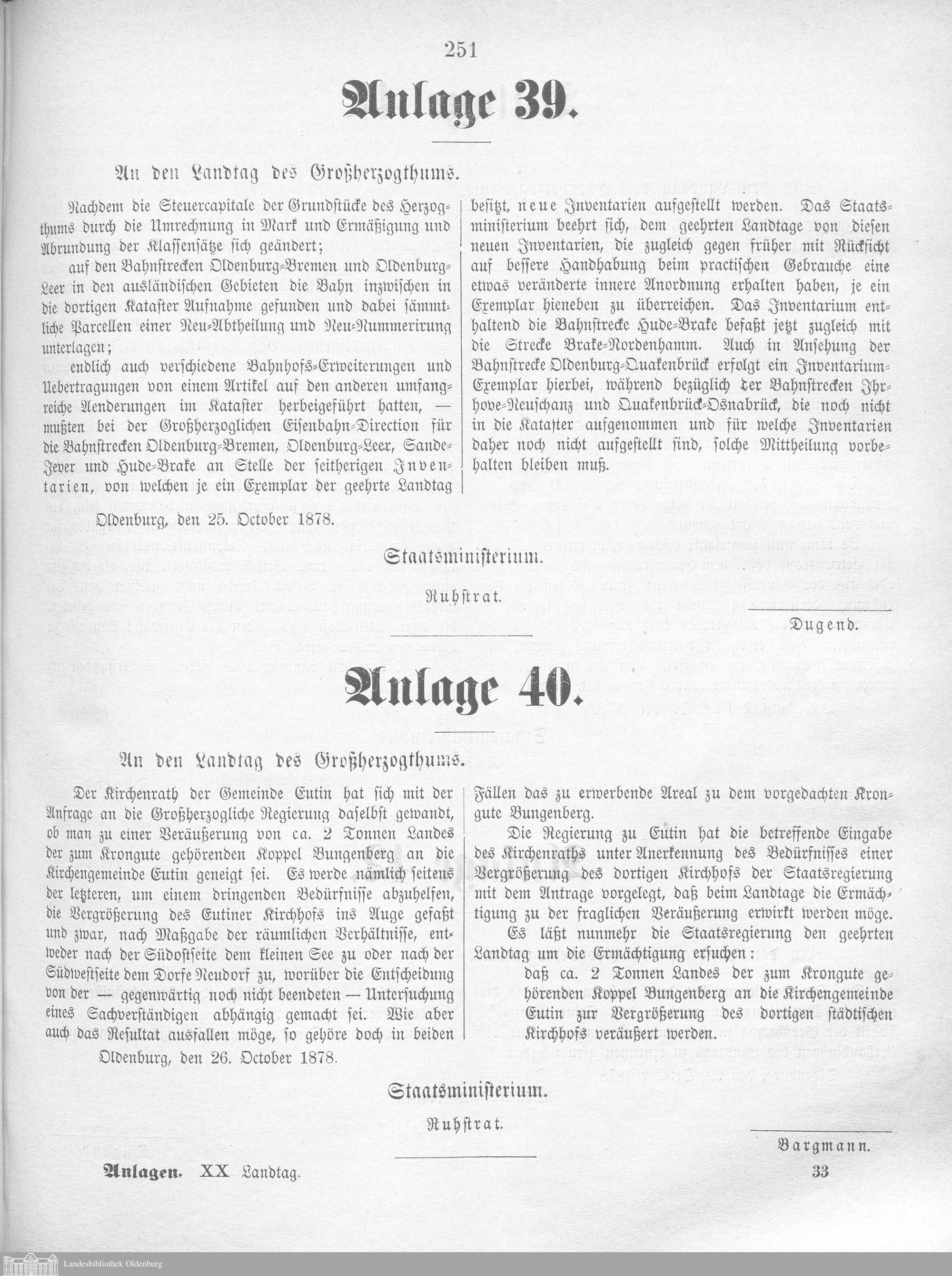 Verhandlungen der ... Versammlung des ... Landtags des Freistaats Oldenburg / Anlagen zu den Niederschriften und Berichten / Anlagen zu den Protokollen und Berichten