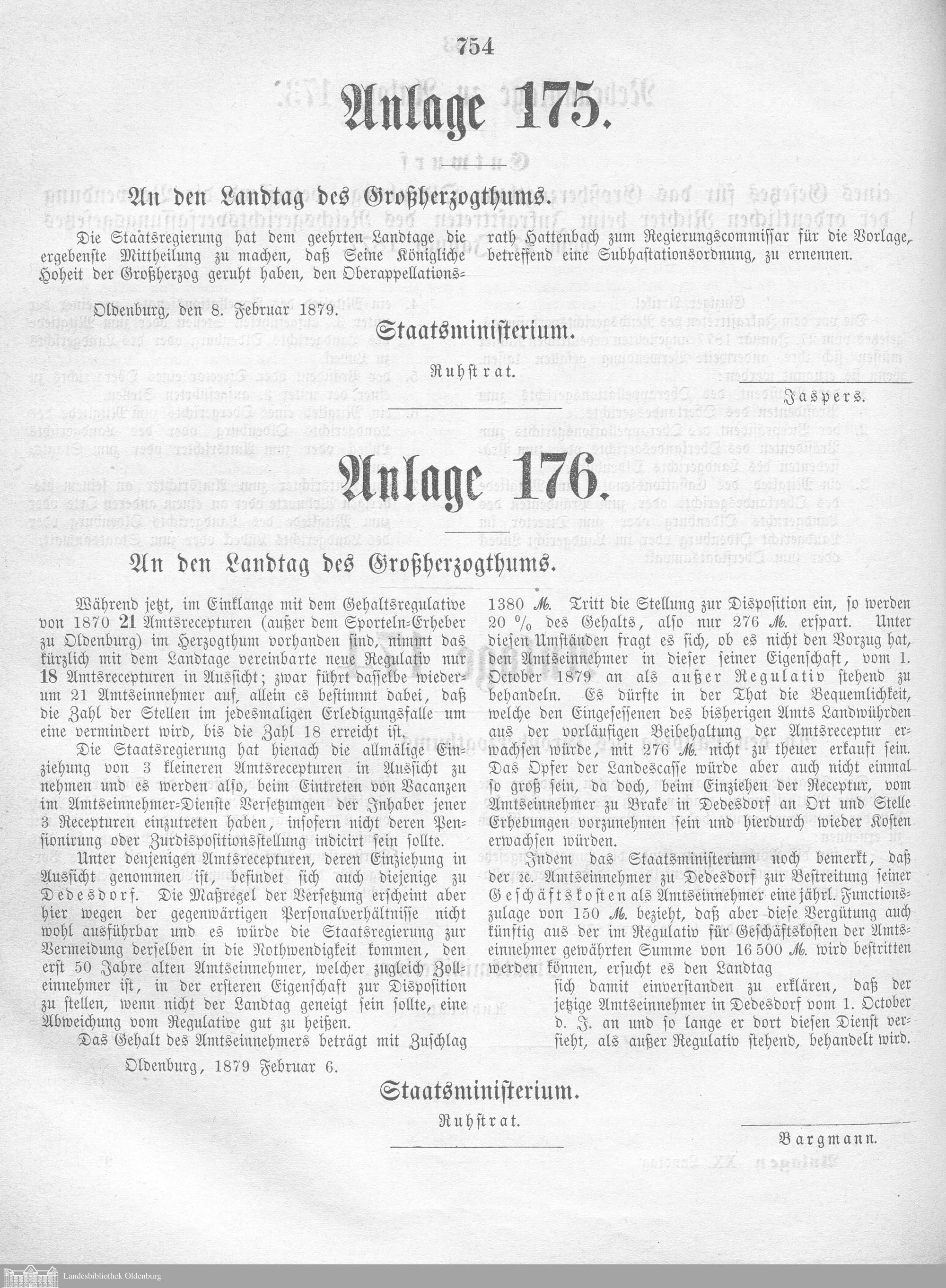 Verhandlungen der ... Versammlung des ... Landtags des Freistaats Oldenburg / Anlagen zu den Niederschriften und Berichten / Anlagen zu den Protokollen und Berichten