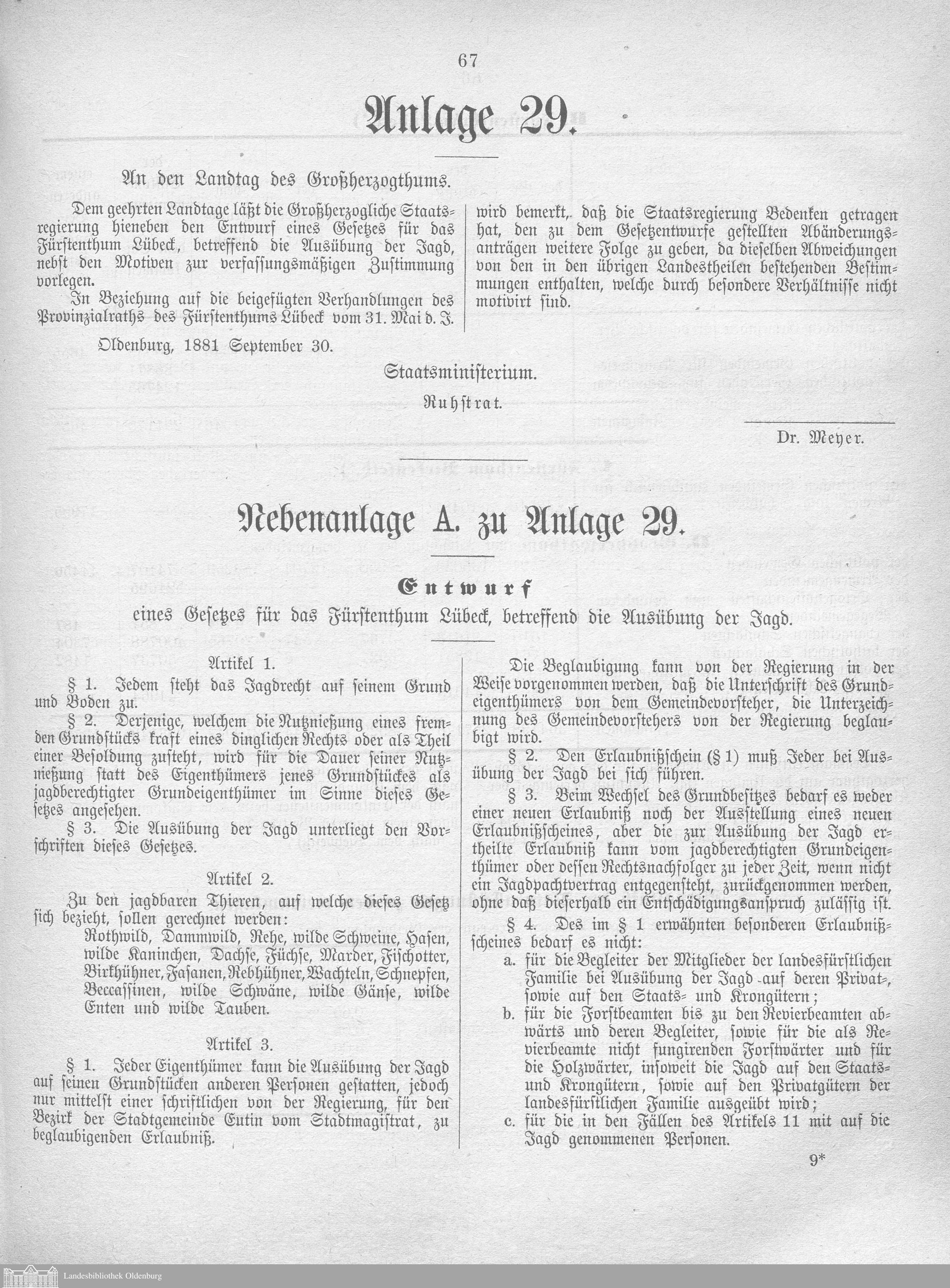 Verhandlungen der ... Versammlung des ... Landtags des Freistaats Oldenburg / Anlagen zu den Niederschriften und Berichten / Anlagen zu den Protokollen und Berichten