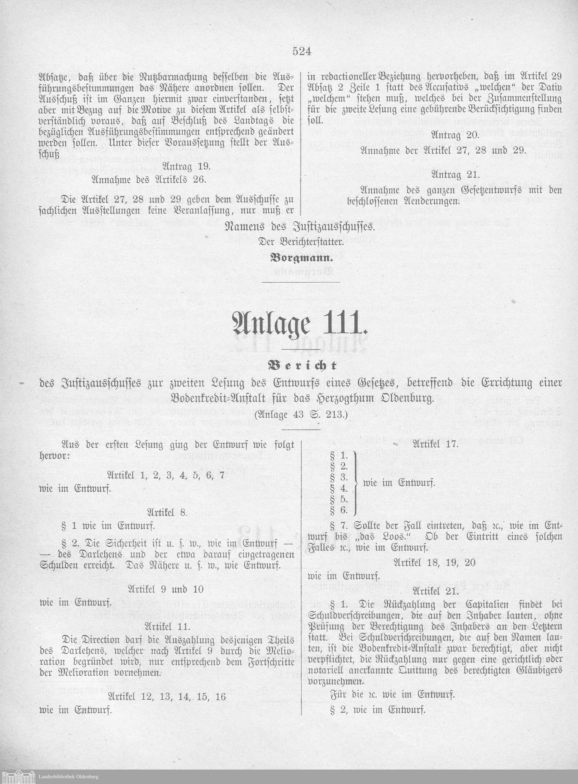 Verhandlungen der ... Versammlung des ... Landtags des Freistaats Oldenburg / Anlagen zu den Niederschriften und Berichten / Anlagen zu den Protokollen und Berichten
