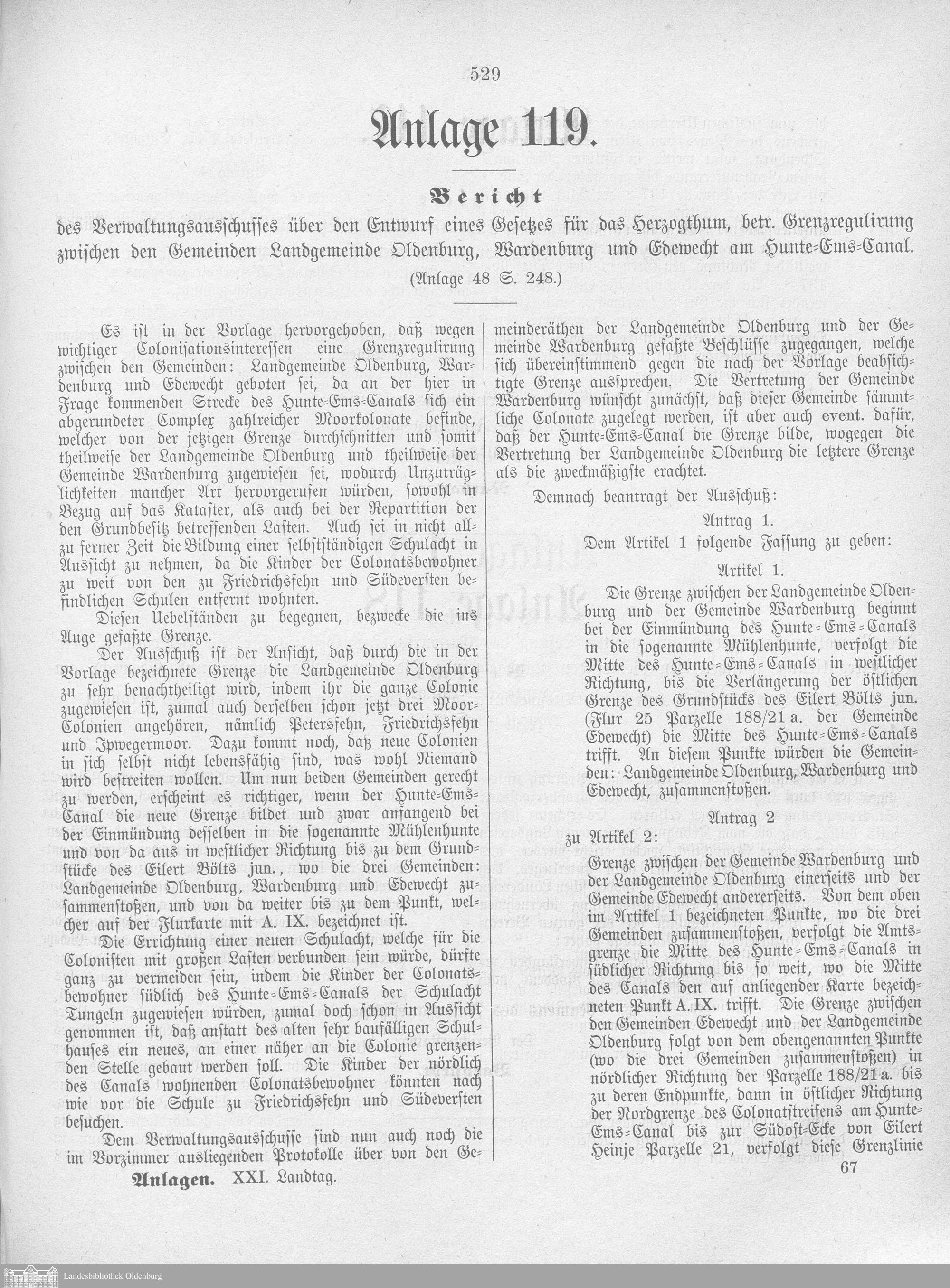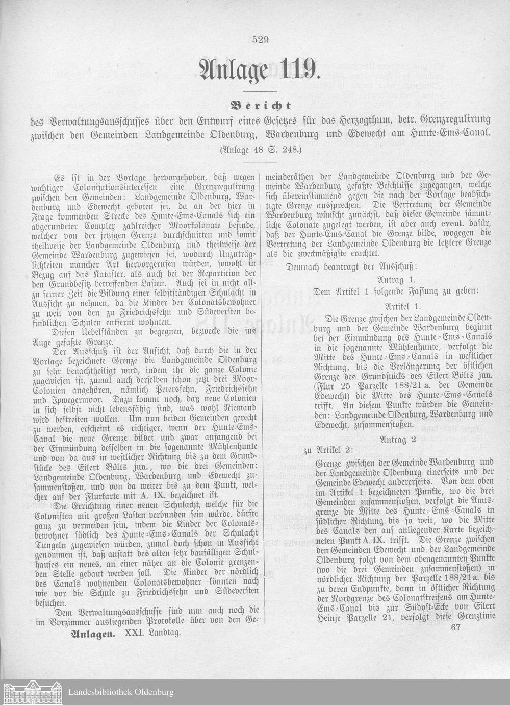 Verhandlungen der ... Versammlung des ... Landtags des Freistaats Oldenburg / Anlagen zu den Niederschriften und Berichten / Anlagen zu den Protokollen und Berichten