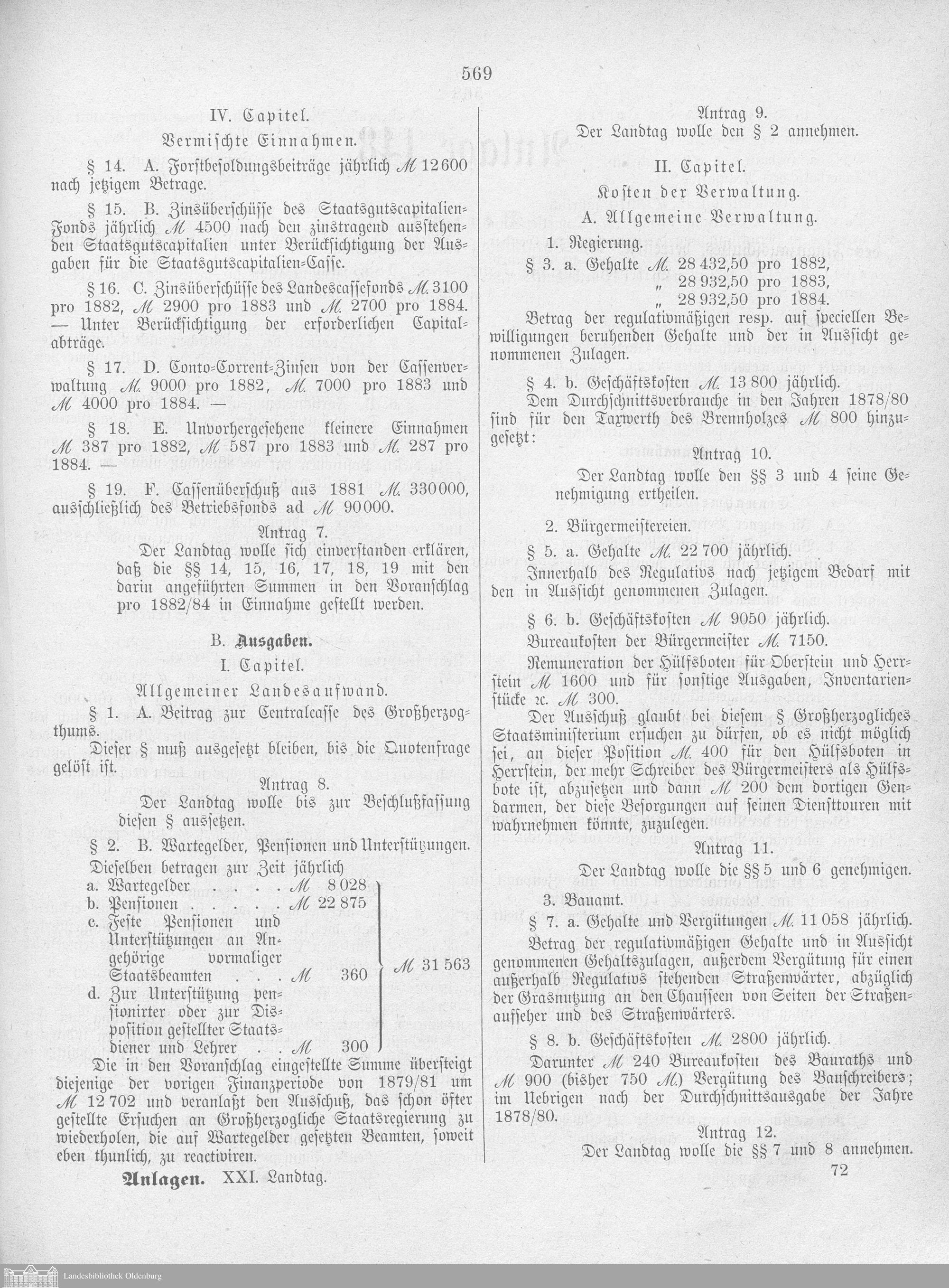 Verhandlungen der ... Versammlung des ... Landtags des Freistaats Oldenburg / Anlagen zu den Niederschriften und Berichten / Anlagen zu den Protokollen und Berichten