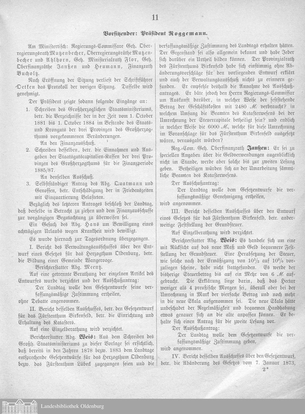 XXII. Landtag 06.11.1884-19.12.1884