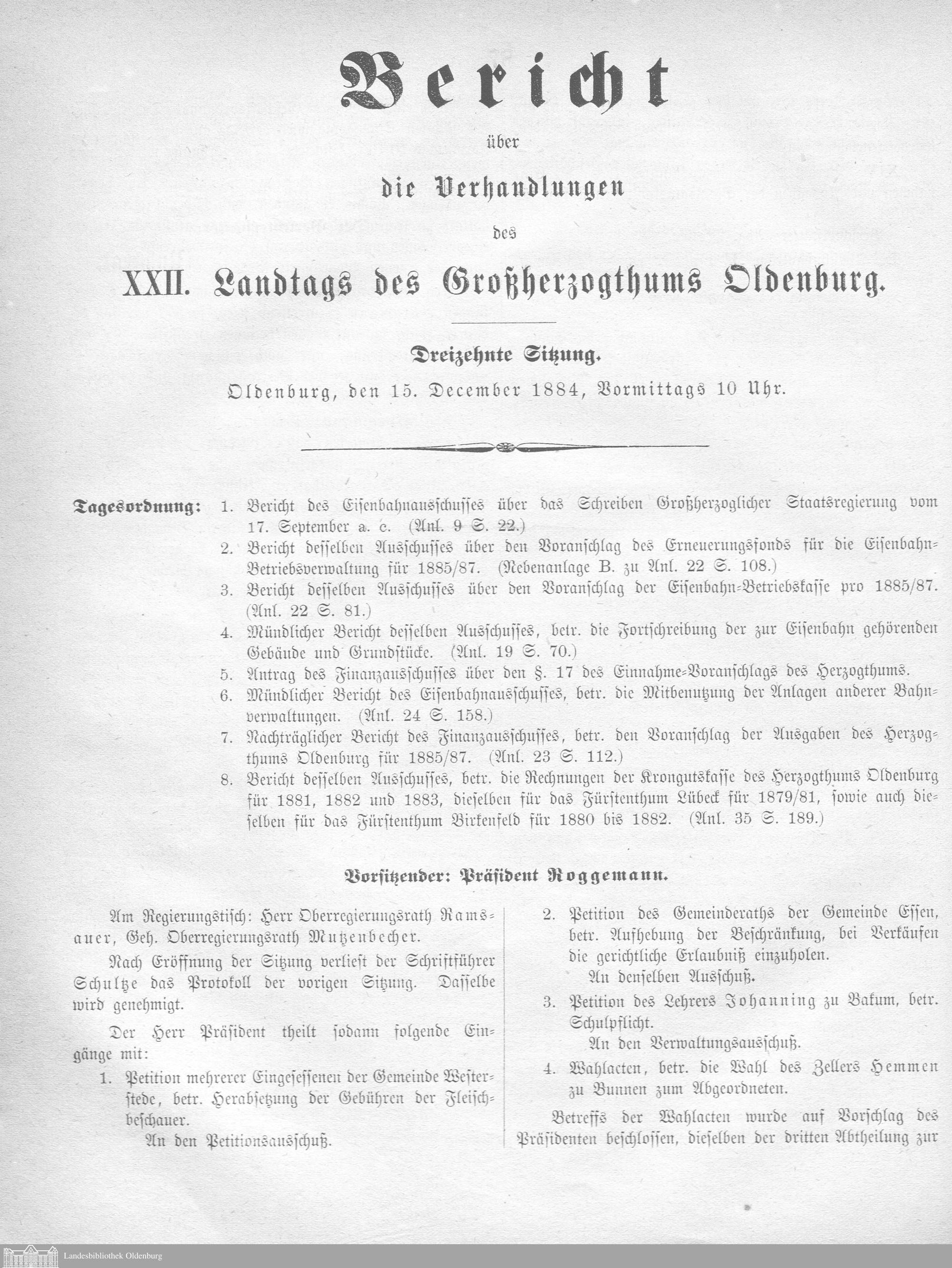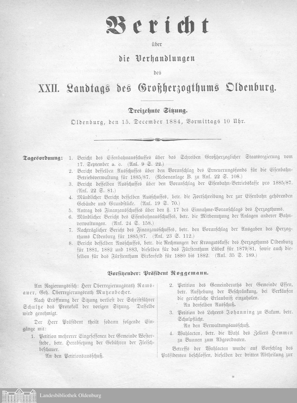 Verhandlungen des ... Allgemeinen Landtags des Großherzogtums Oldenburg