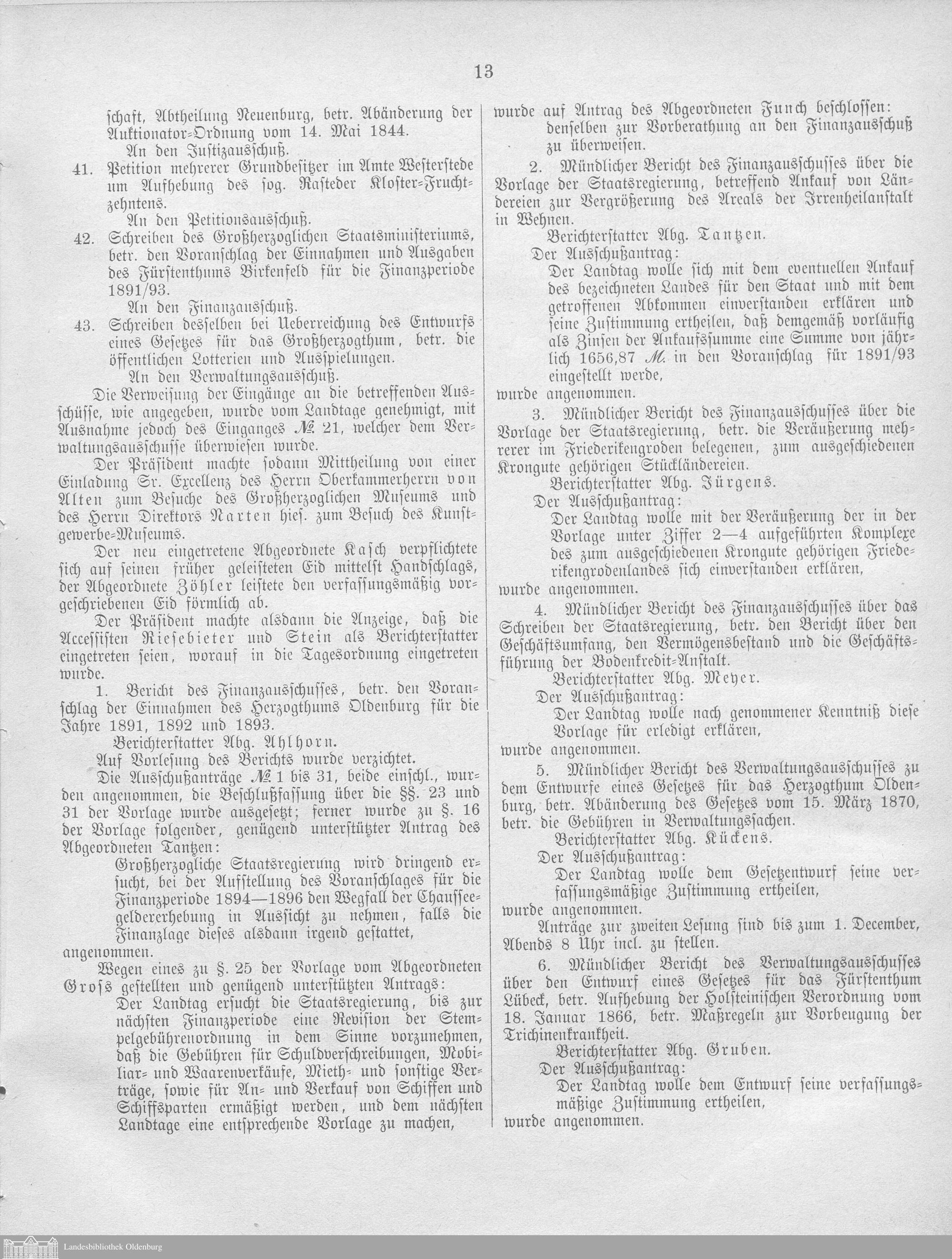 Verhandlungen des ... Allgemeinen Landtags des Großherzogtums Oldenburg / Protokolle