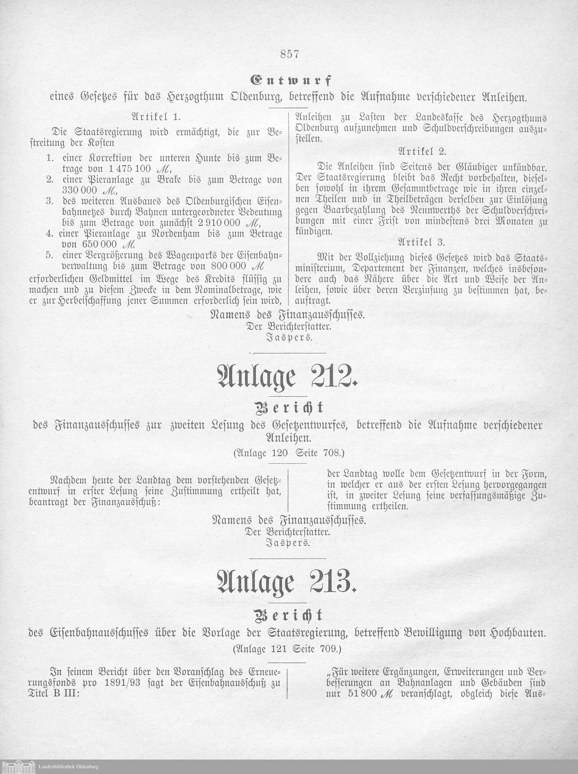 Verhandlungen der ... Versammlung des ... Landtags des Freistaats Oldenburg / Anlagen zu den Niederschriften und Berichten / Anlagen zu den Protokollen und Berichten