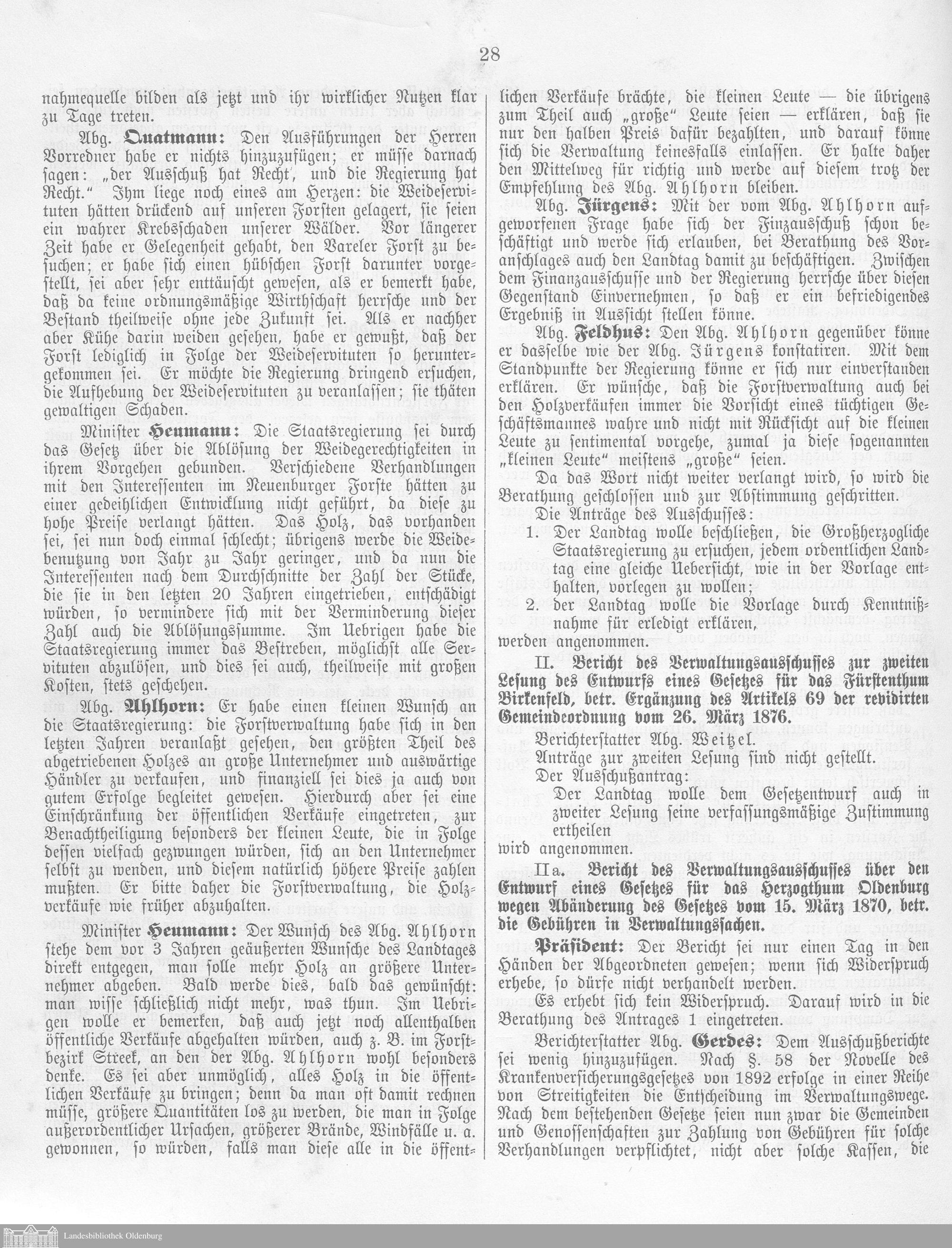 Verhandlungen des ... Allgemeinen Landtags des Großherzogtums Oldenburg
