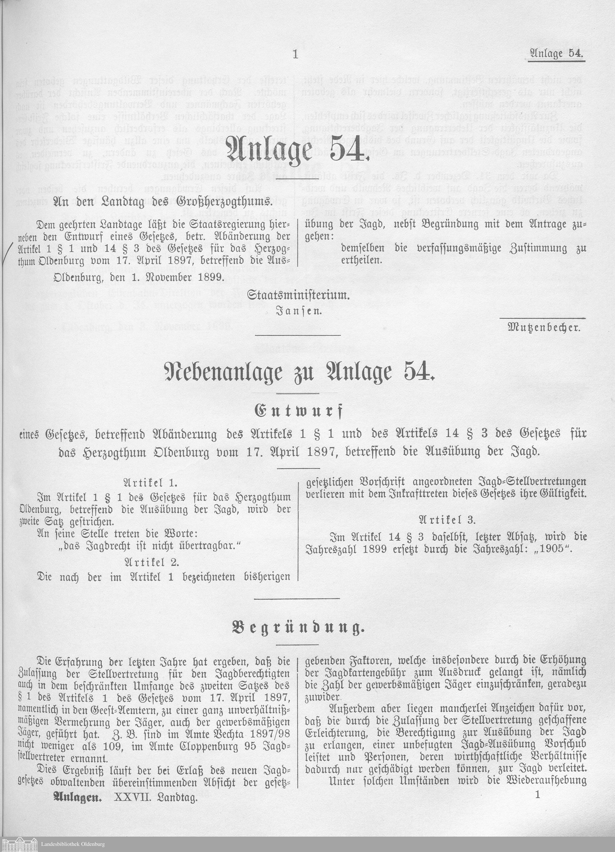 XXVII. Landtag 04.11.1899-21.12.1901