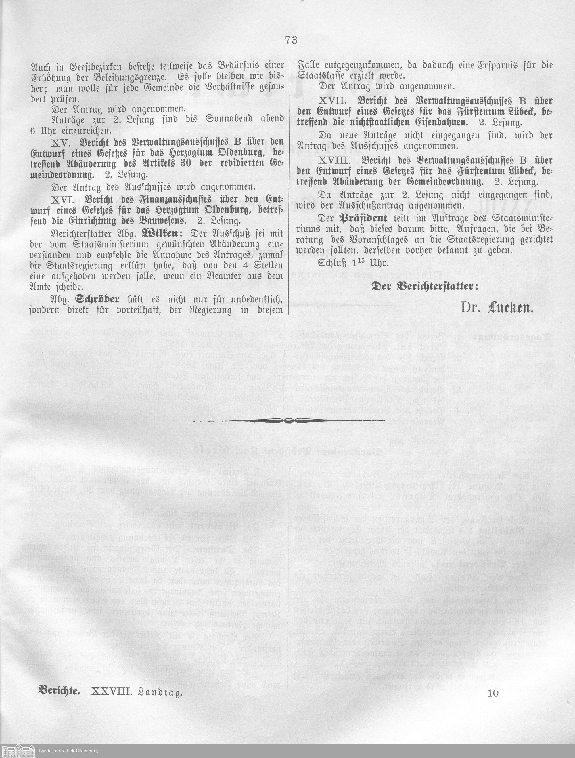 Verhandlungen des ... Allgemeinen Landtags des Großherzogtums Oldenburg / Berichte