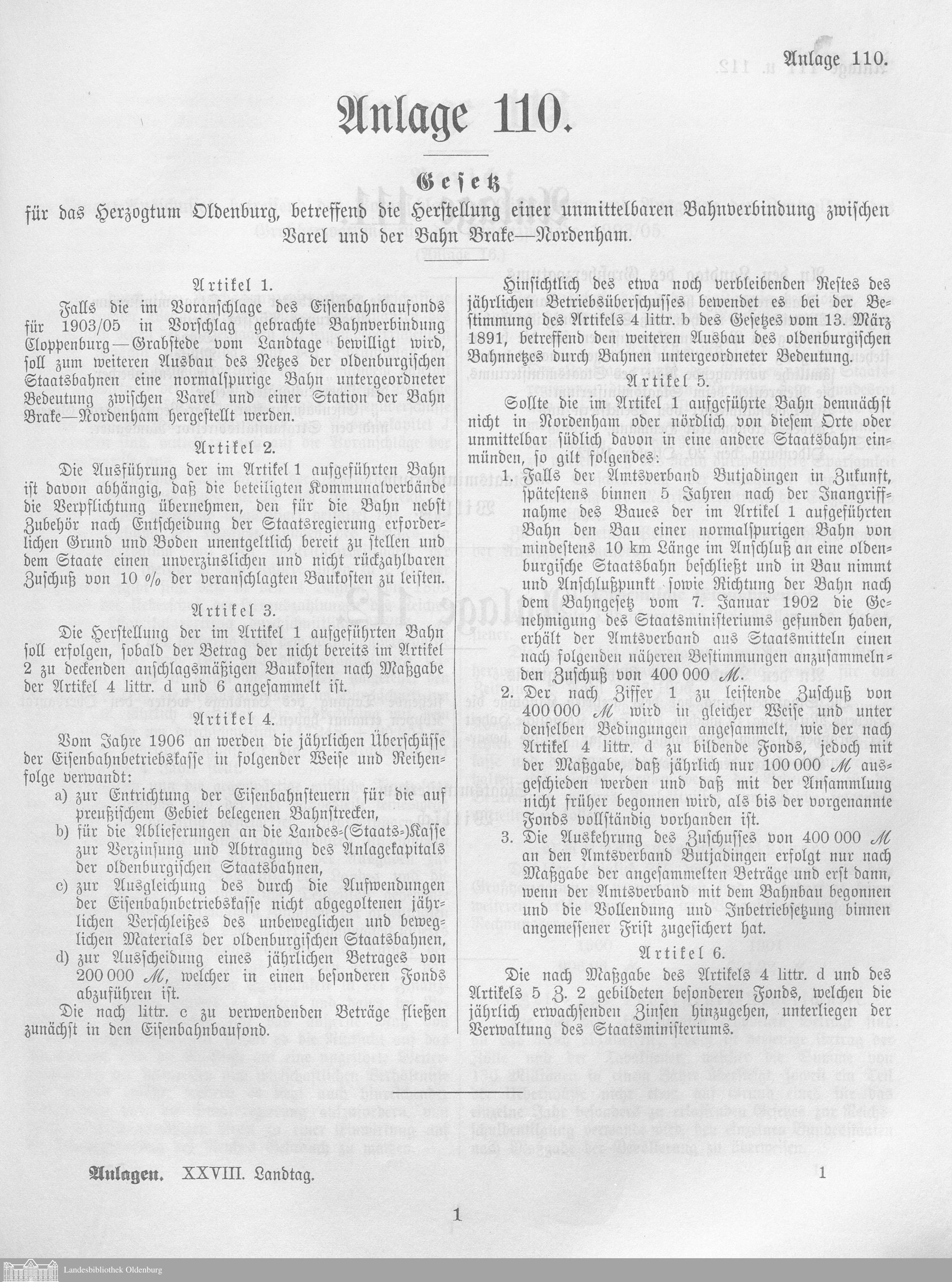 Verhandlungen der ... Versammlung des ... Landtags des Freistaats Oldenburg / Anlagen zu den Niederschriften und Berichten / Anlagen zu den Protokollen und Berichten